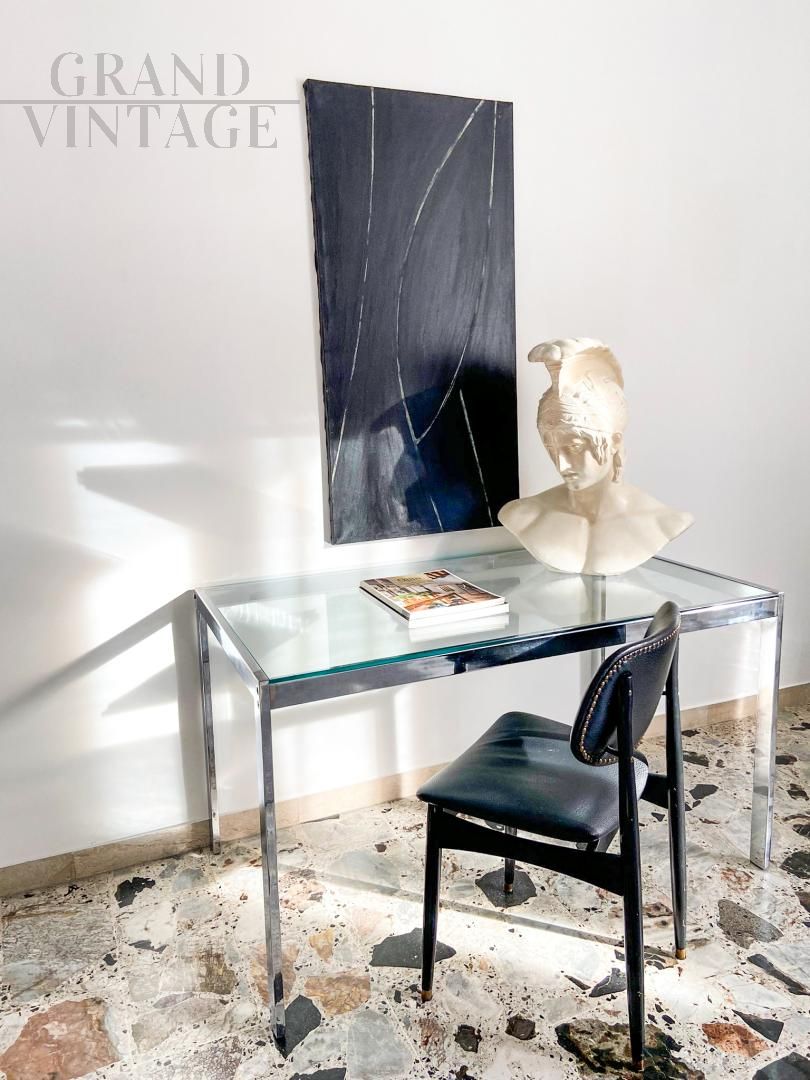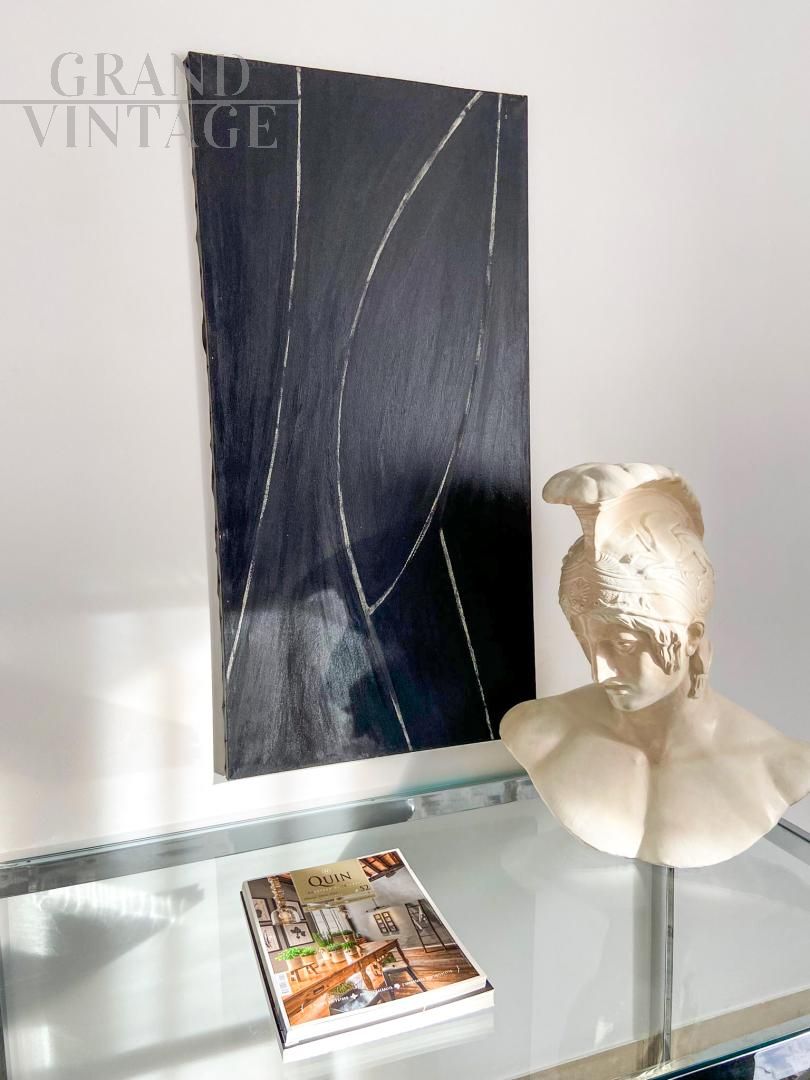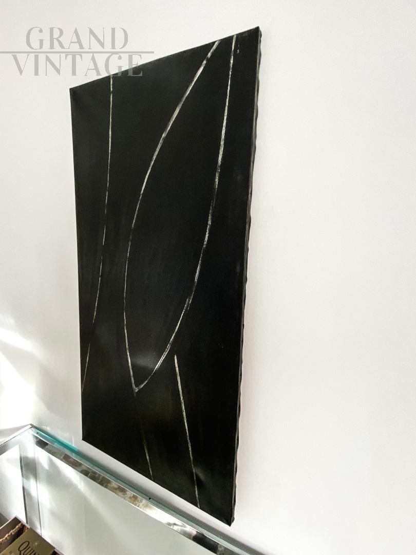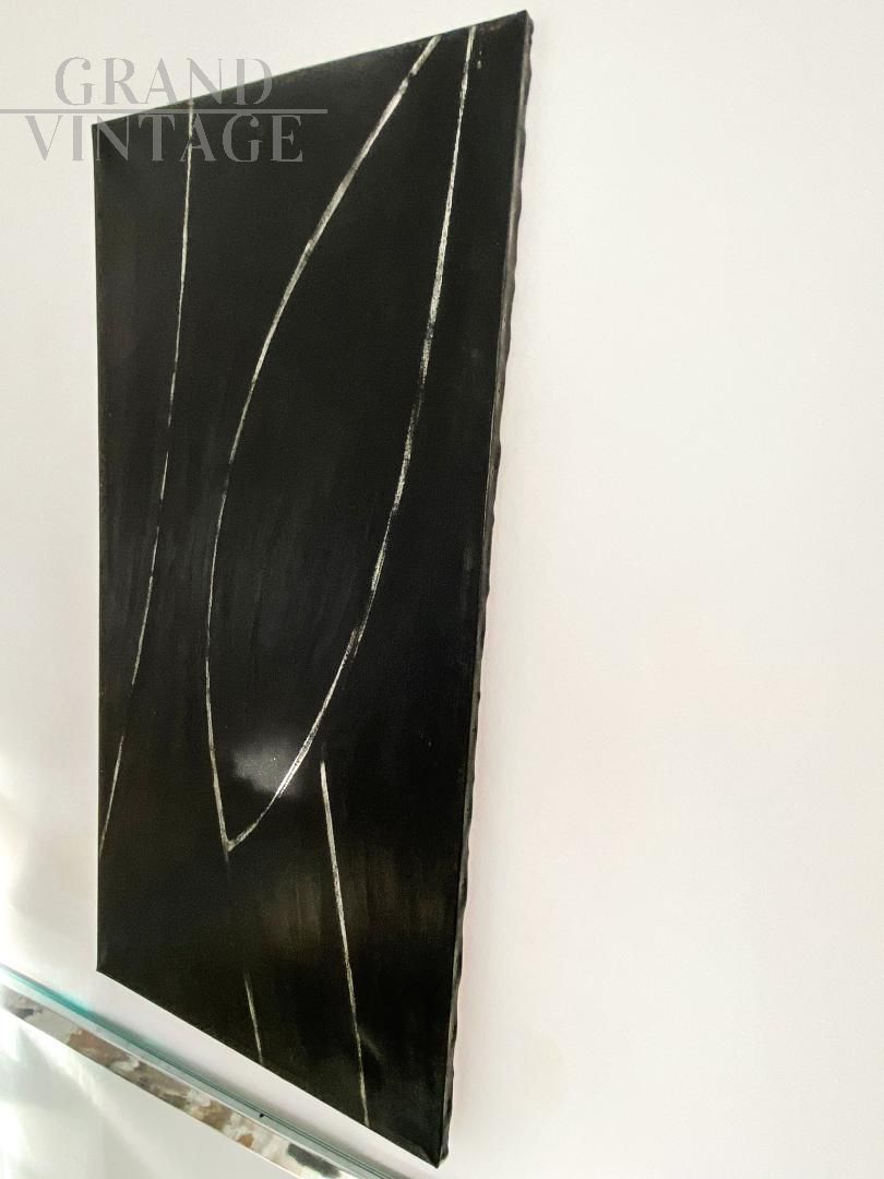 Elegante dipinto contemporaneo olio su tela di Marco Gradi sulle tonalità del nero, Italia anni '80.