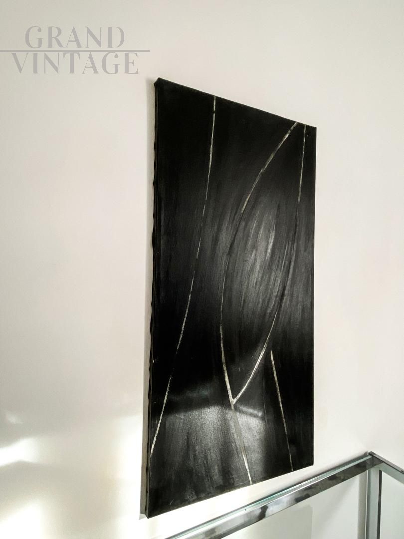 Marco Gradi, dipinto astratto olio su tela sui toni del nero, Italia anni '80