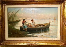 Giulio Amodio - Dipinto La famiglia del pescatore, fine '800 / inizi '900Prezzo Scontato Prezzo Scontato 6.000,00 €