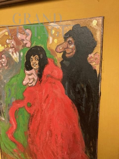 Maschere - Dipinto ad Olio su Cartone anni '20 firmato