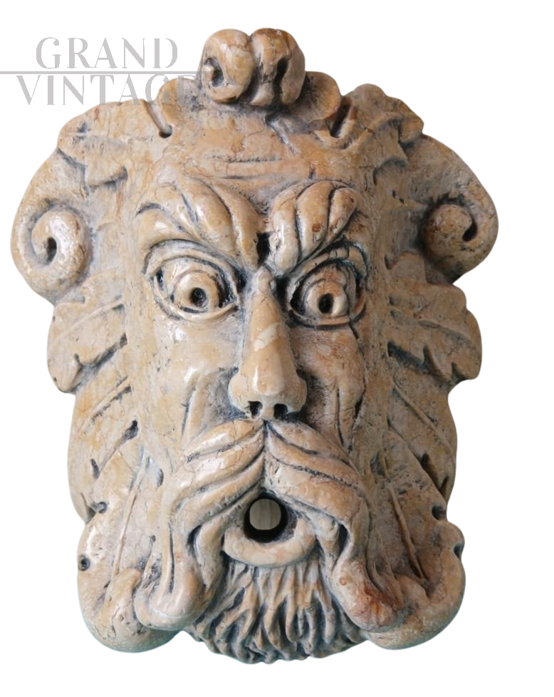 Bellissimo mascherone in stile antico in marmo giallo reale finemente scolpito con tecniche e materiali antichi.