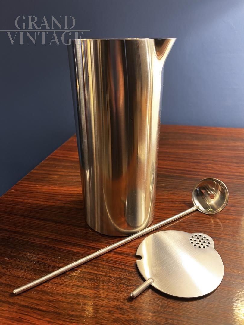 Elegante miscelatore vintage Martini con cucchiaio di Arne Jacobsen per Stelton, prodotto in acciaio inox in Danimarca.