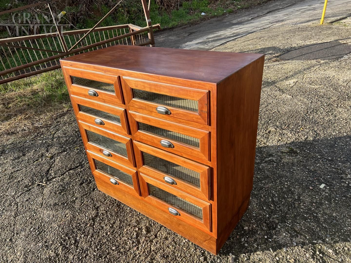 Mobile pastaia antico in ciliegio con 8 cassetti a vetro