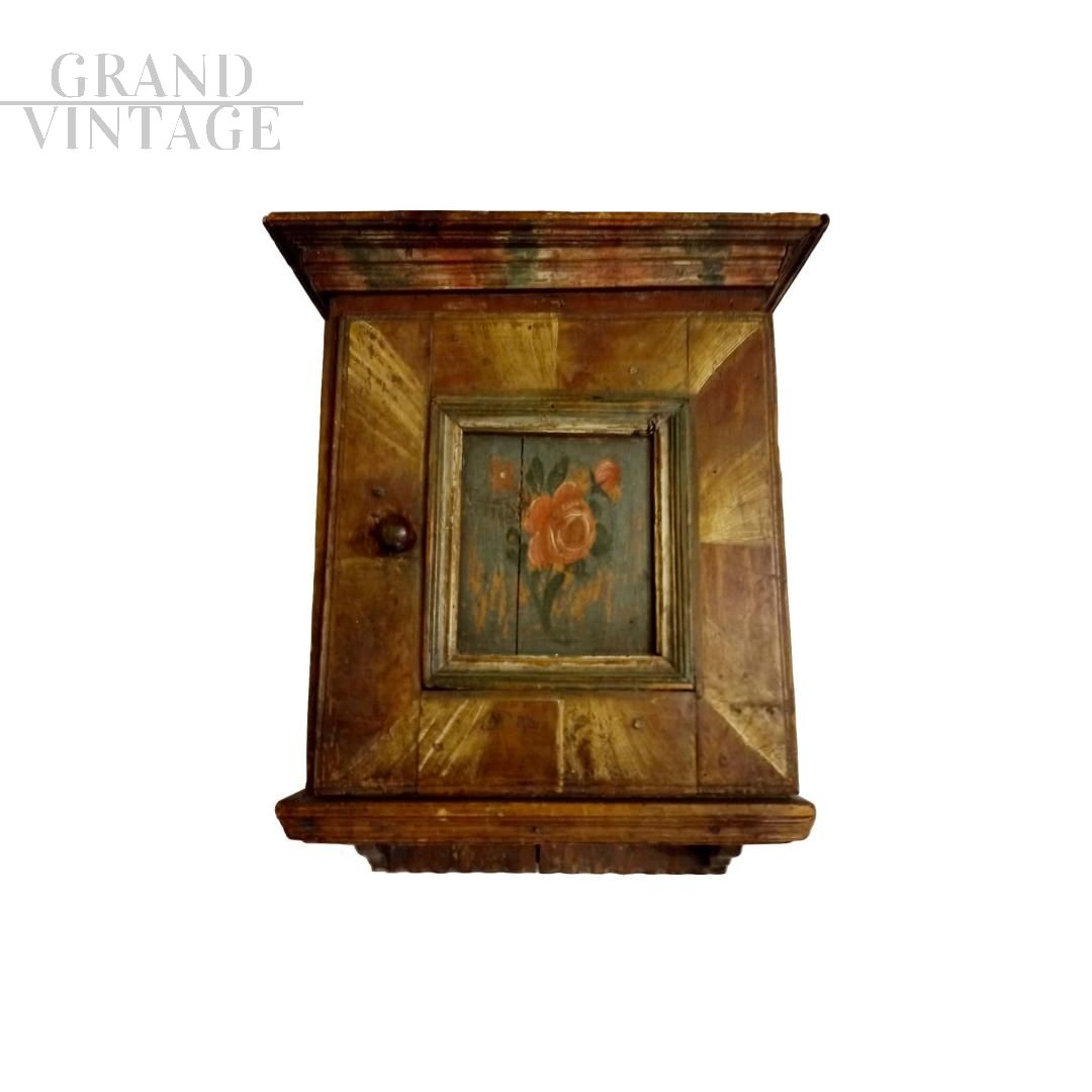Mobiletto pensile Alto Veneto con dipinto floreale originale.