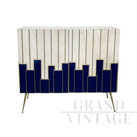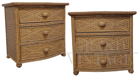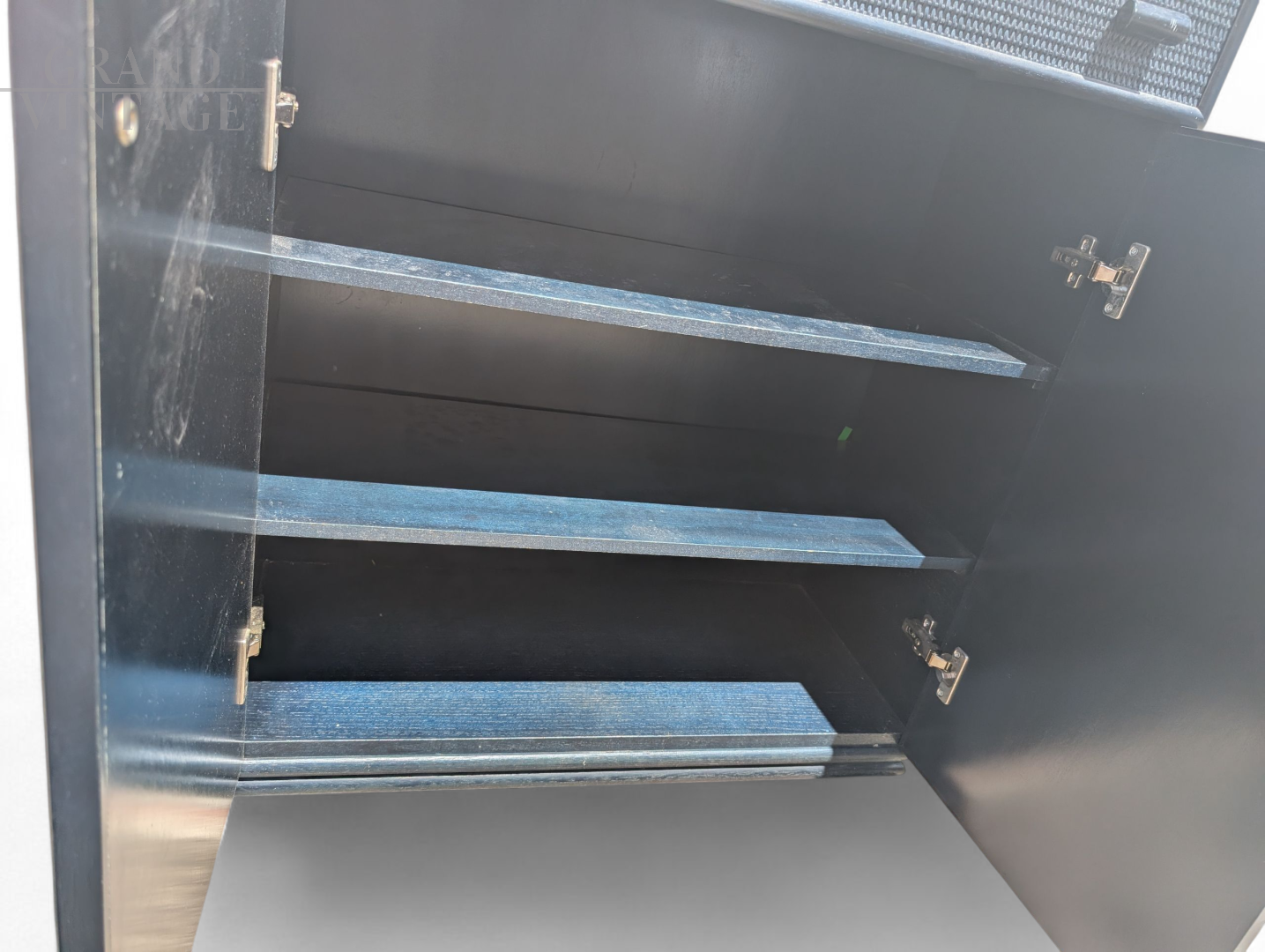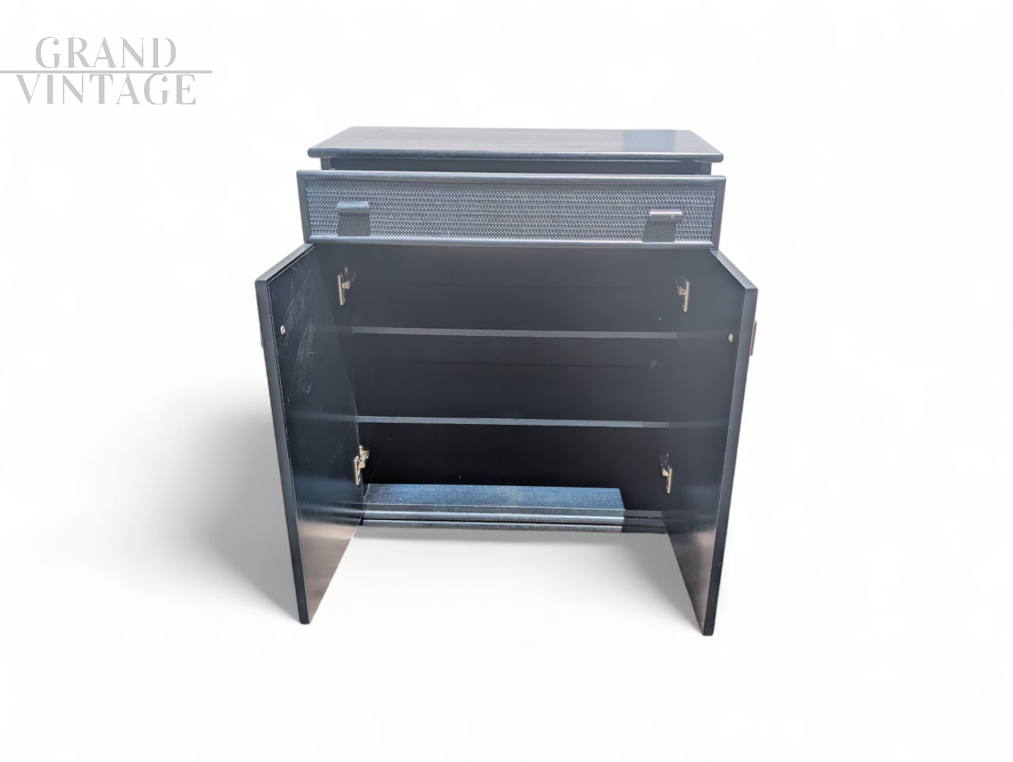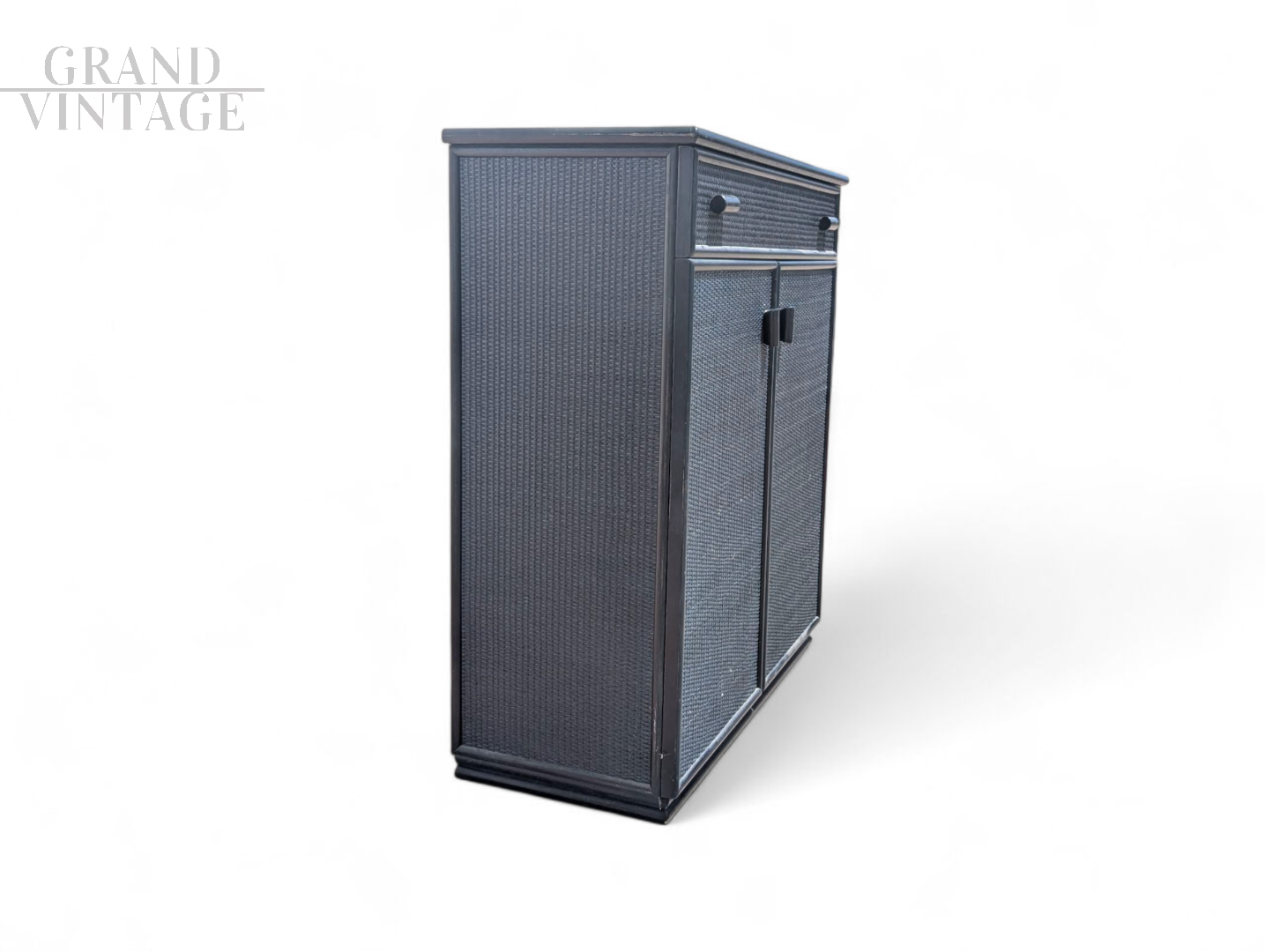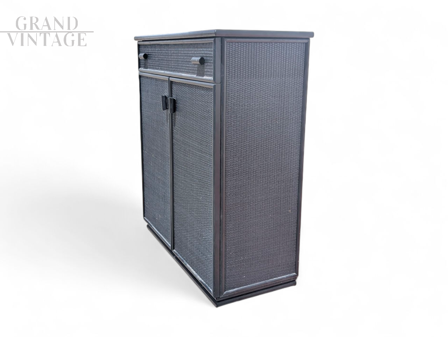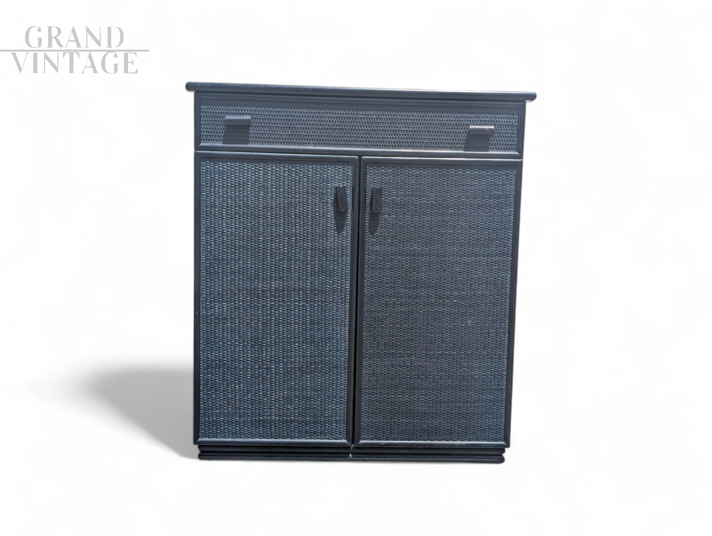 Mobiletto vintage in vimini color blu petrolio, anni '60