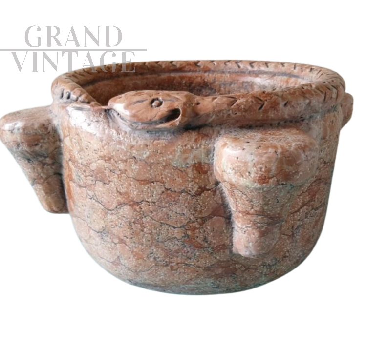 Mortaio in stile antico in marmo rosso Verona con serpente