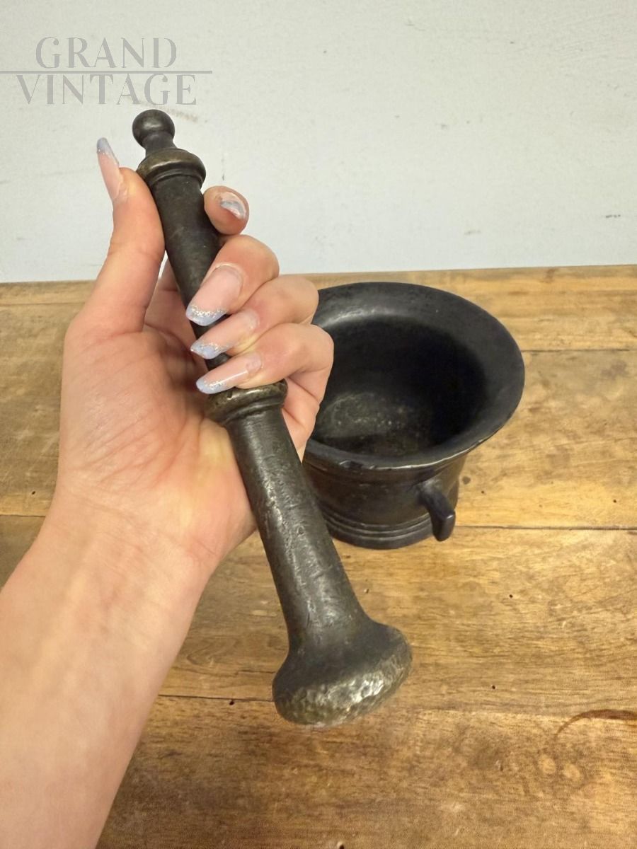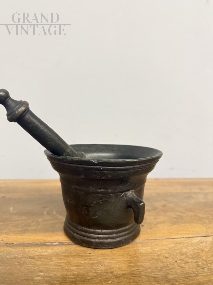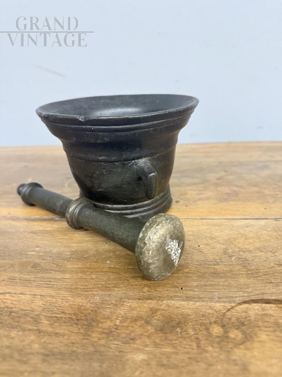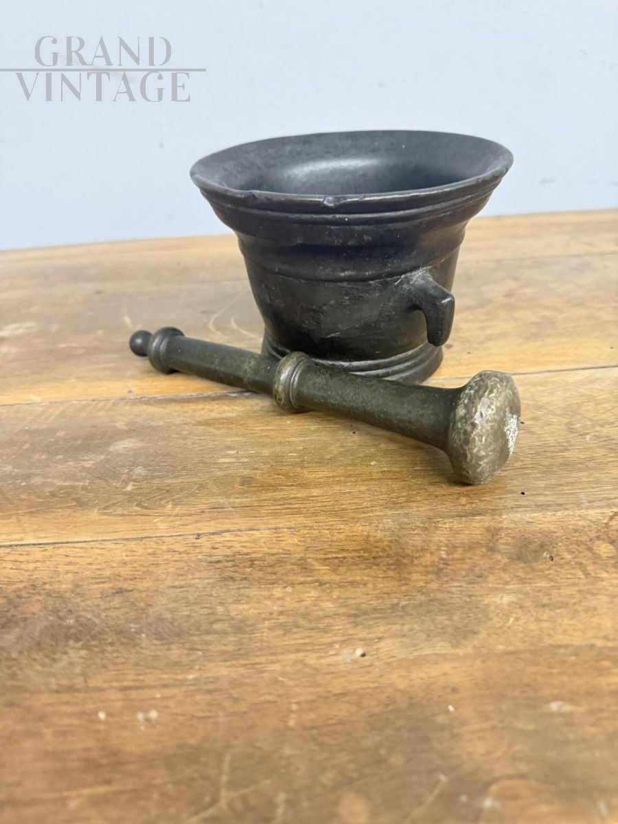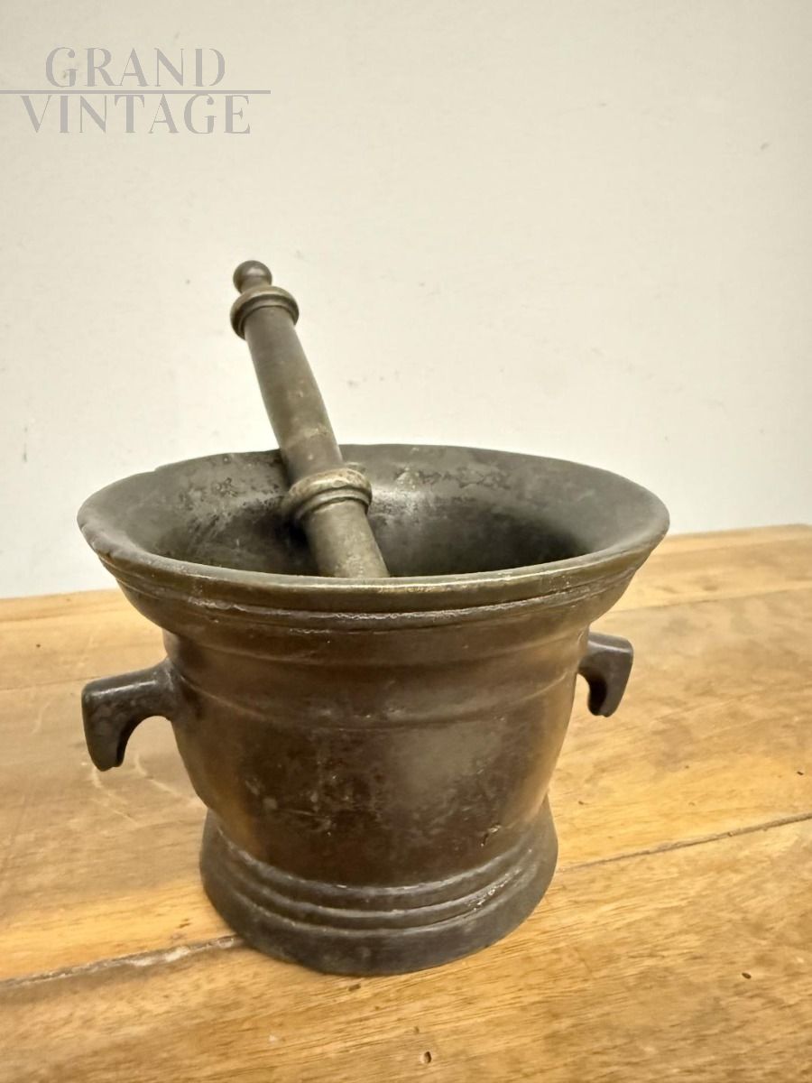 Mortaio umbro antico in bronzo del XVI secolo con pestello
