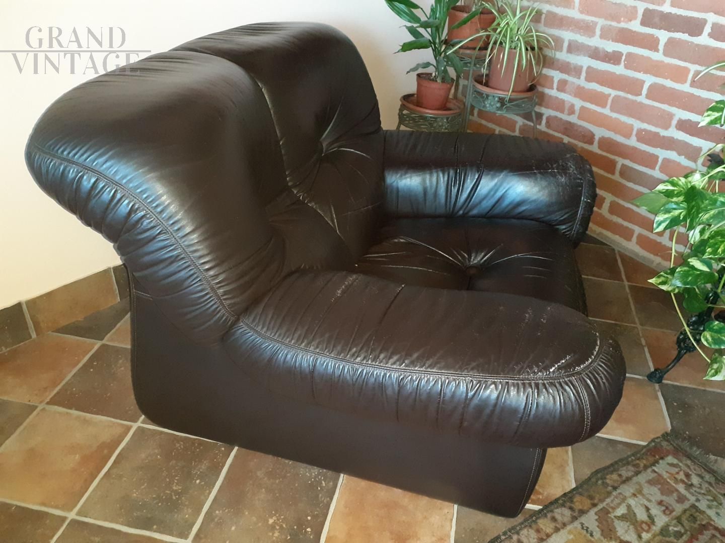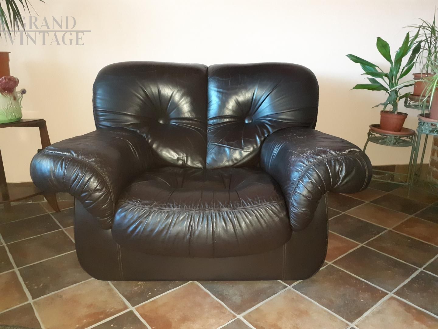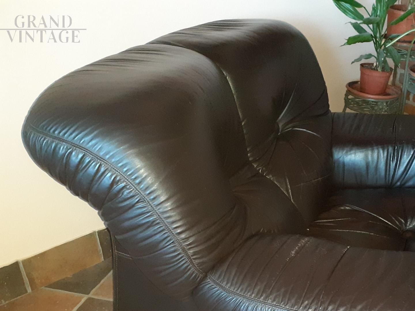 Set di 3 poltrone vintage in pelle nera primo fiore, anni '70