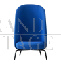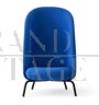 Poltrona Nest Easy XL di +Halle dal design moderno, con schienale alto e seduta morbida e avvolgente, abbraccia chi vi si siede come se fosse un nido accogliente, come suggerisce il suo nome. Questo esemplare è nuovo con cartellino ed è rivestito in tessuto Kvadrat blu, le gambe sono in acciaio nero, i piedini in plastica proteggono il pavimento a eventuali segni.