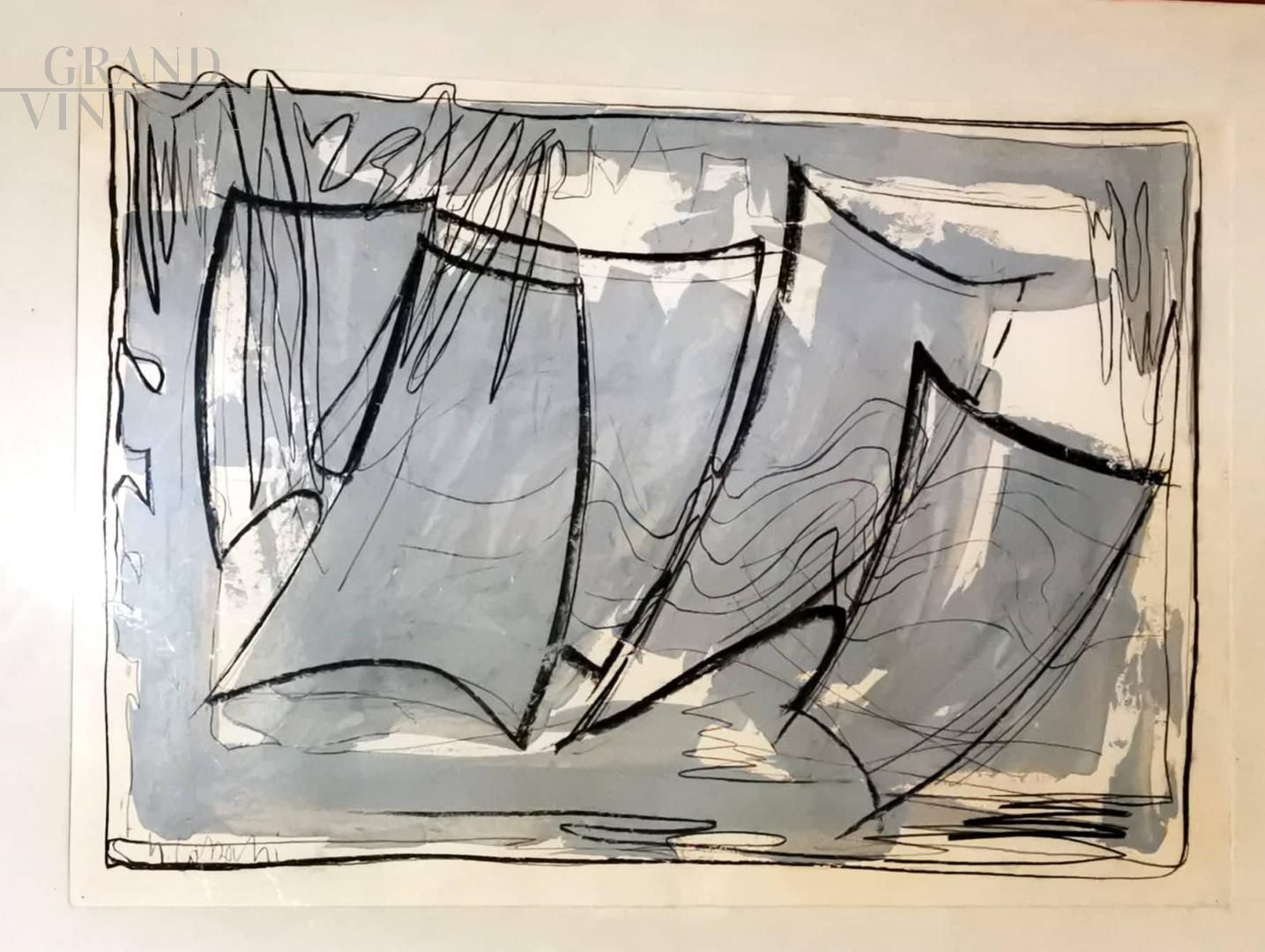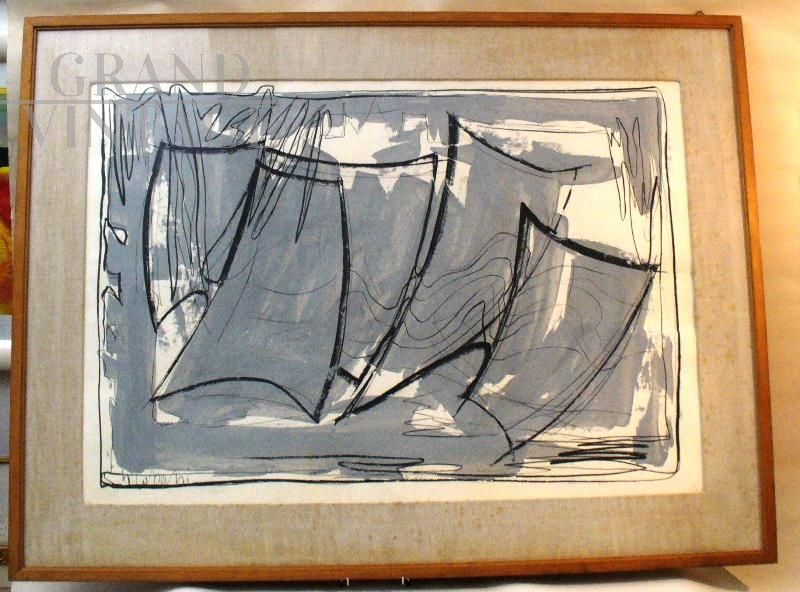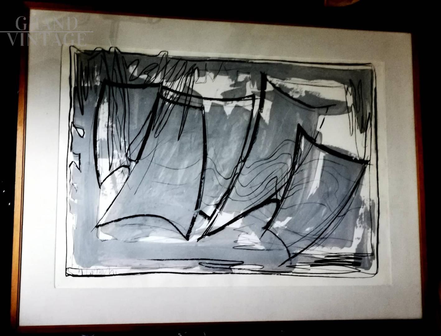 Opera di Nino Cassani (Viggiù, 15 maggio 1930 – Milano, 11 dicembre 2017), tempera e carboncino su carta - (studi preparatori di sculture) Anni '70, Firmato.