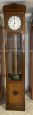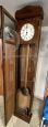 Grande ed elegante orologio a pendolo a colonna anni '40 realizzato artigianalmente in noce. L'orologio presenta una colonna decorata con intagli, anta in vetro, quadrante a numeri arabi e pendolo in metallo. L’orologio, nonostante sia in buone condizioni e munito di chiave, non è funzionante e necessita di ricalibratura.