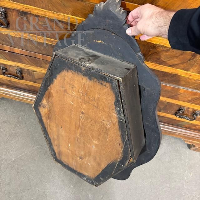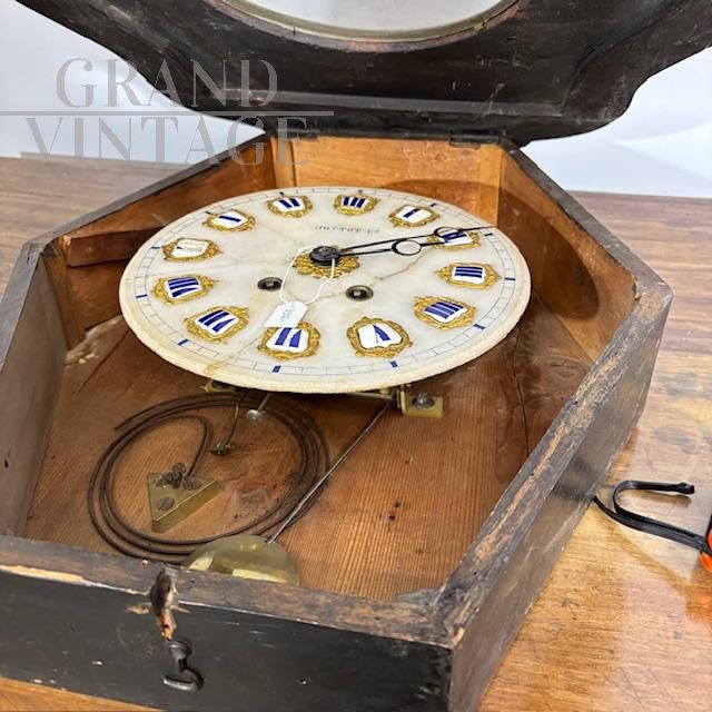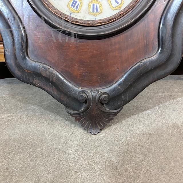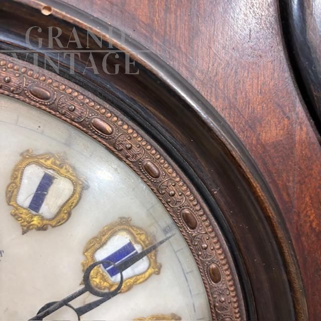 Orologio da parete antico modello Occhio di Bue in legno, 1850