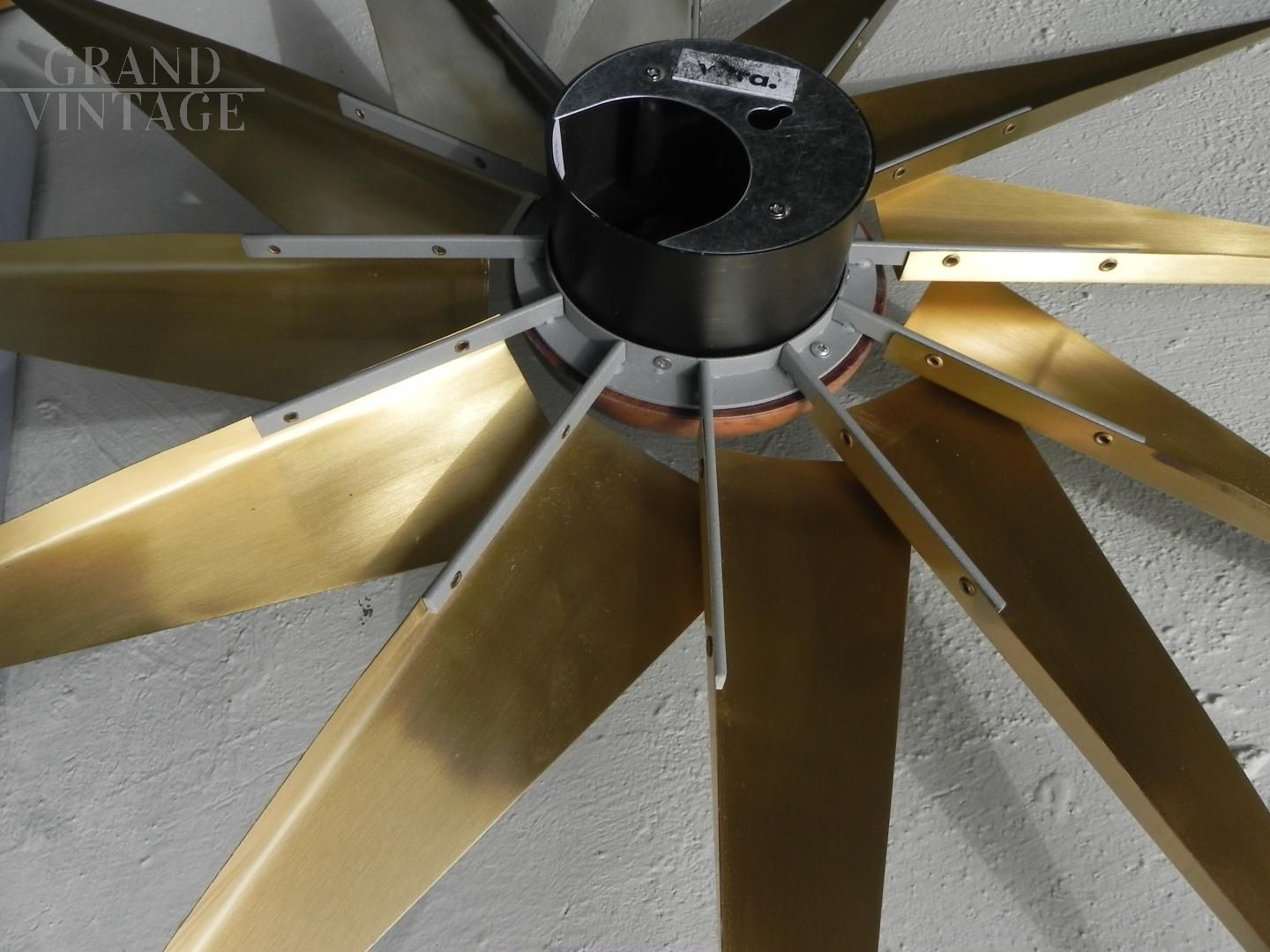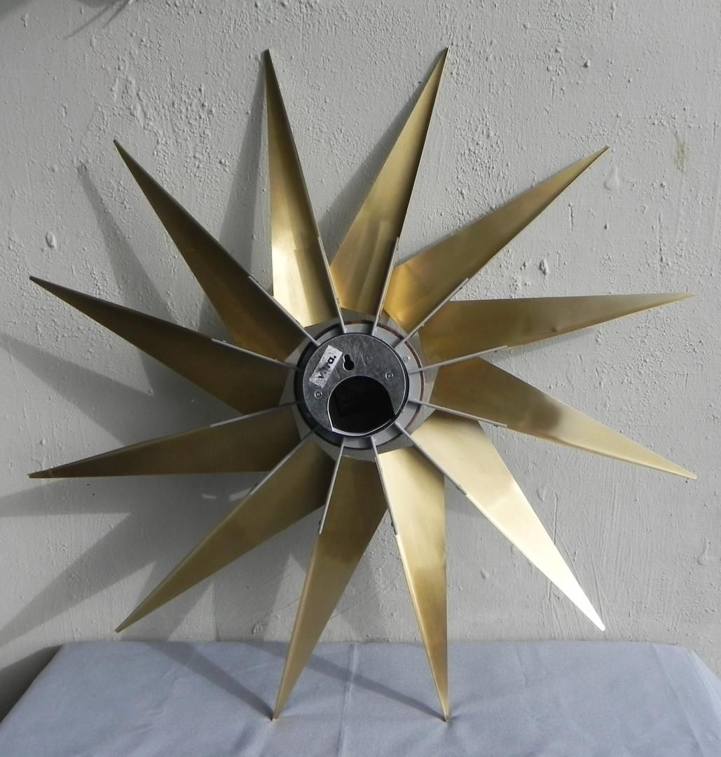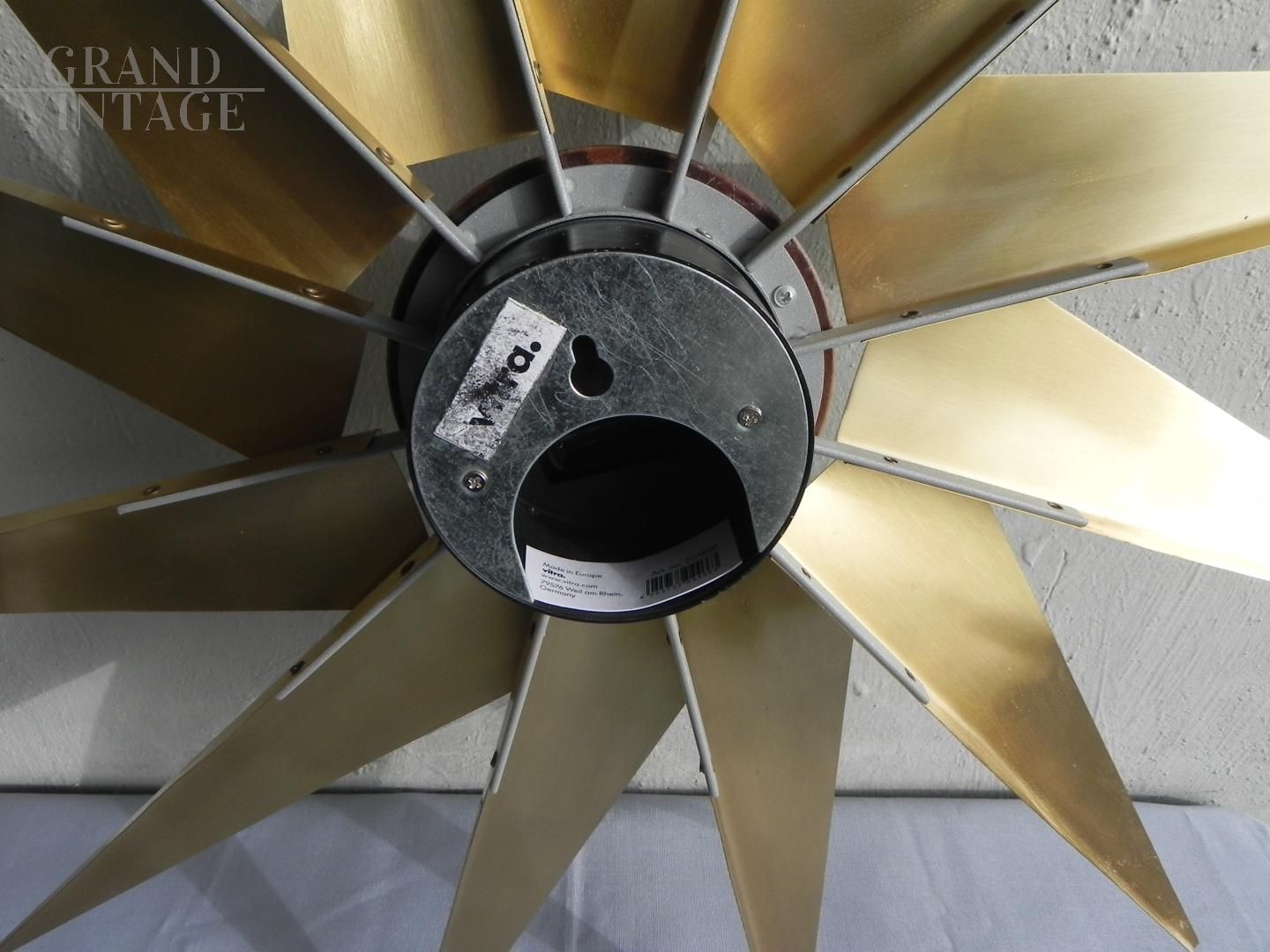 Orologio design vintage in stile Turbine Clock di George Nelson per Vitra, realizzato negli anni '90 con un elemento centrale rivestito in legno pregiato e raggi in ottone massiccio. L'orologio presenta i naturali segni d'uso e qualche difetto sui raggi.