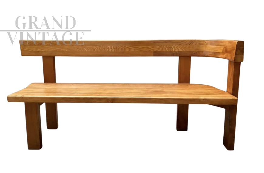 Splendida panca modello S35 disegnata dal famoso designer francese Pierre Chapo e realizzata in legno di olmo massello con una bellissima curva a un lato, un pezzo iconico del design francese degli anni '70. Nota per la sua estetica senza tempo e la sua robusta struttura, questa panca unisce funzionalità ed eleganza, rendendola la scelta preferita dagli amanti dei mobili di design vintage.