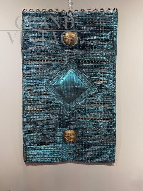Pannello decorativo della serie " SCUDI" di M'Horò. Scultura tratta da un radiatore riciclato e manipolato a mani nude dall'artista creando forme geometriche e giocando sulle sinuose linee curve date dal tempo. Il pannello misura cm 120 x 73. L'Opera è accompagnata dal certificato di autenticità fotografico con n° archivio. l'opera può essere contestualizzata anche in ambienti esterni senza rischio di corrosione. M'horò l'artista senza volto, è una delle più singolari figure apparse nel mondo dell'arte negli ultimi anni. Non se ne conoscono né l'identità né il sesso, tantomeno l'età e la nazionalità. Si suppone che sia Italiano/a, ma non è certo. Quello che è certo è che M'Horò si materializza e ci parla tramite la sua arte. Molto peculiari le sue sculture, tutte realizzate con materiali di riciclo.