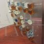 Pannello applique da parete di Poliarte - Progetto Arte Poli di Albano Poli, circa degli anni '70, formato da un grande pannello in acciaio decorato con piccole formelle in vetro colorato, illuminato da una lampadina.