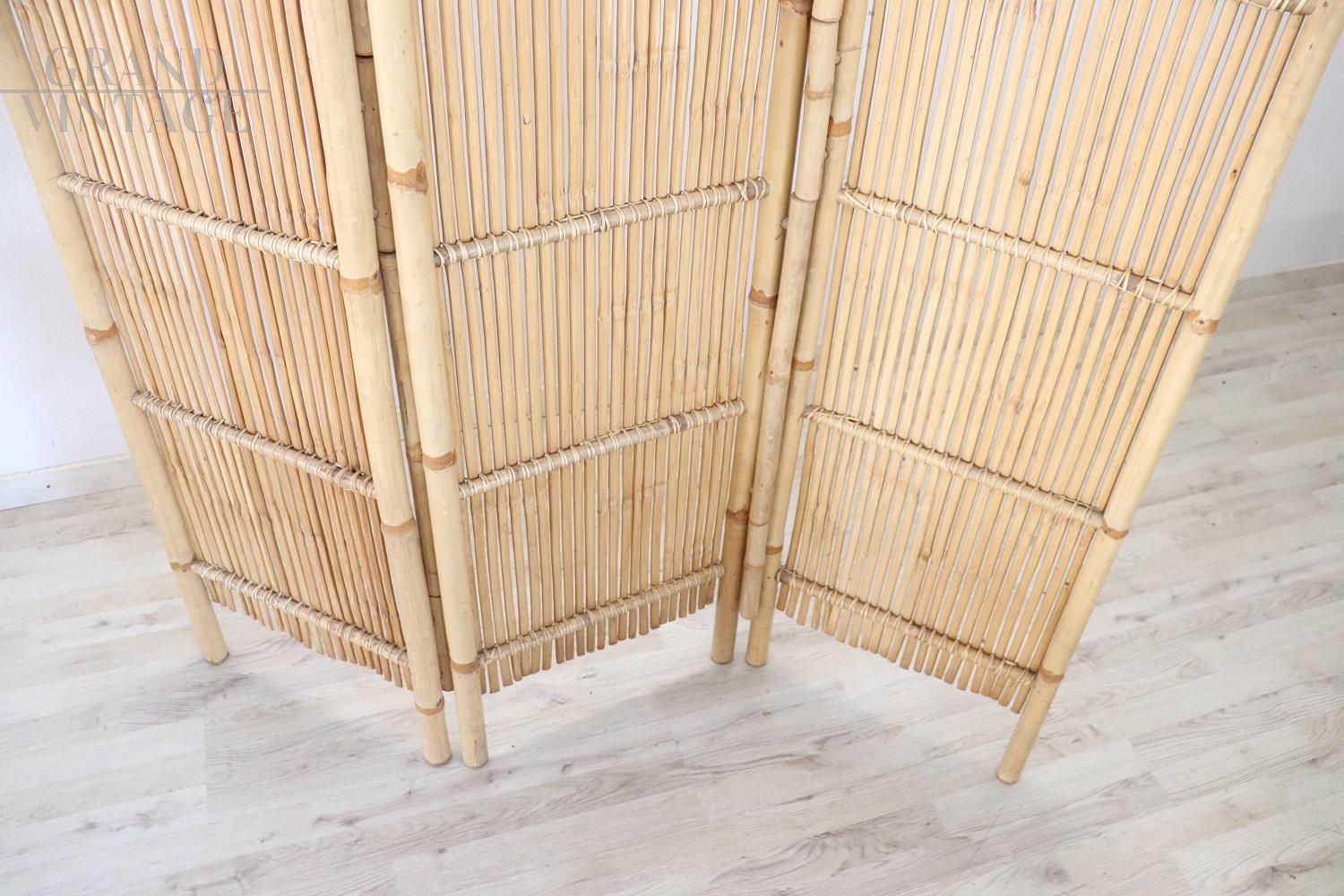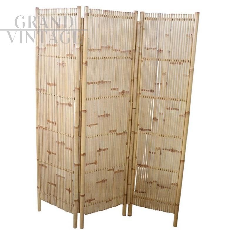 Paravento vintage in bambù, anni '80