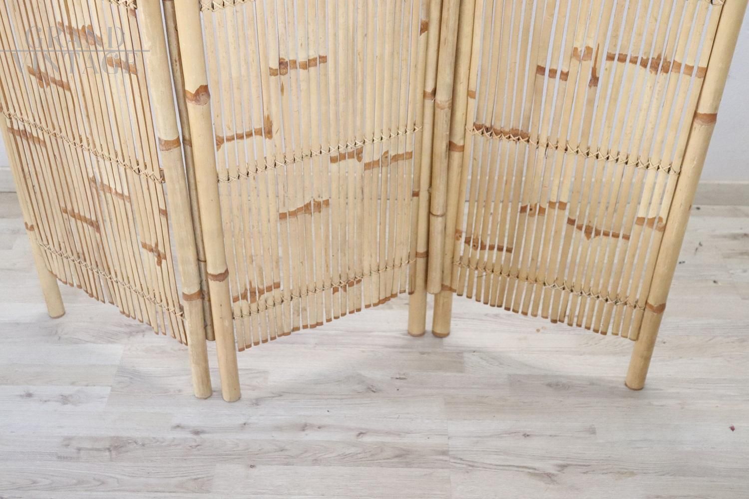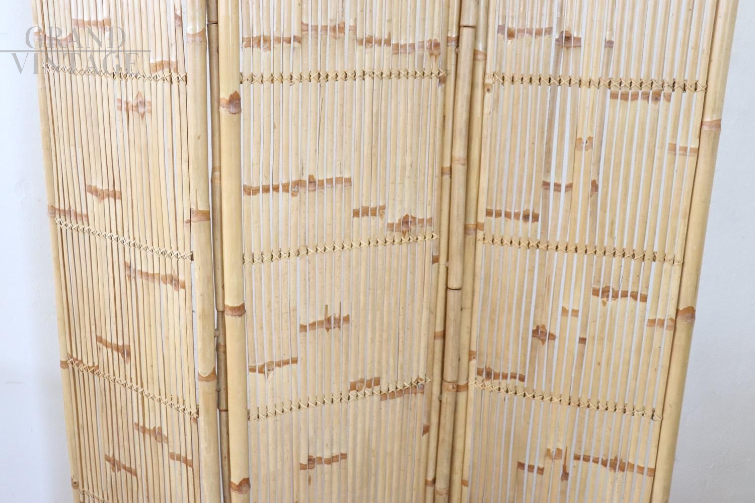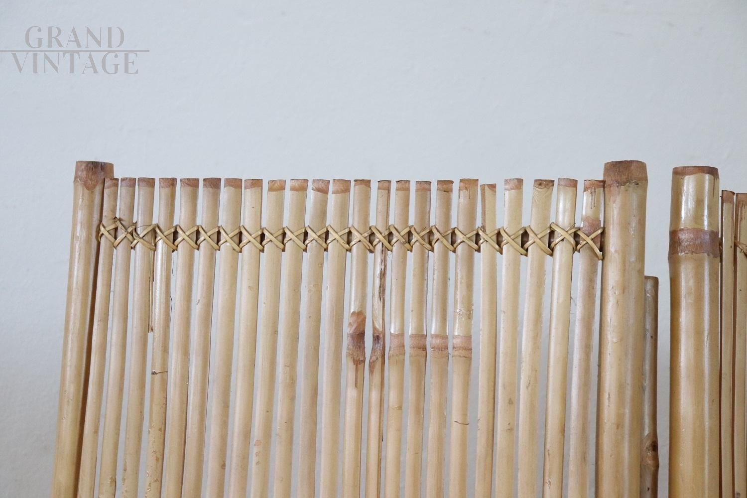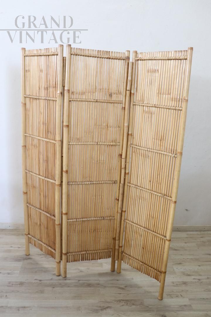 Particolare paravento vintage anni ’80 in bambù, completamente realizzato a mano. In perfette condizioni vintage, nessuna rottura da segnalare. Ottimo prezzo trattabile.