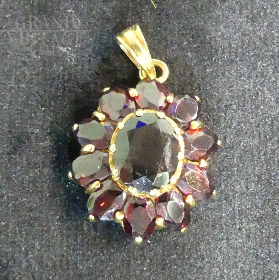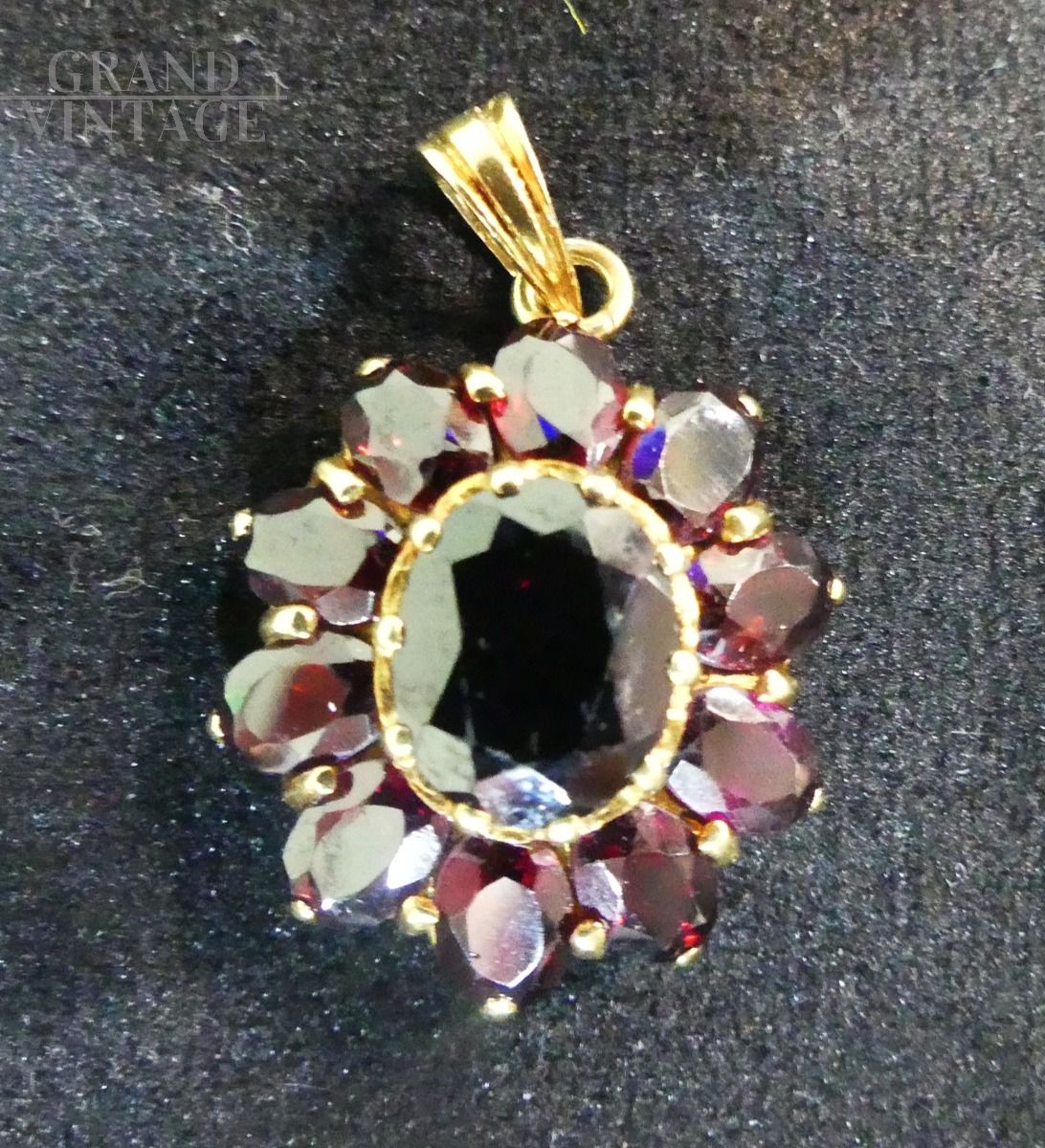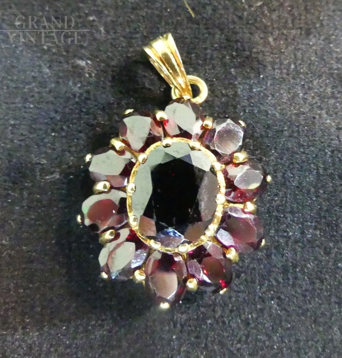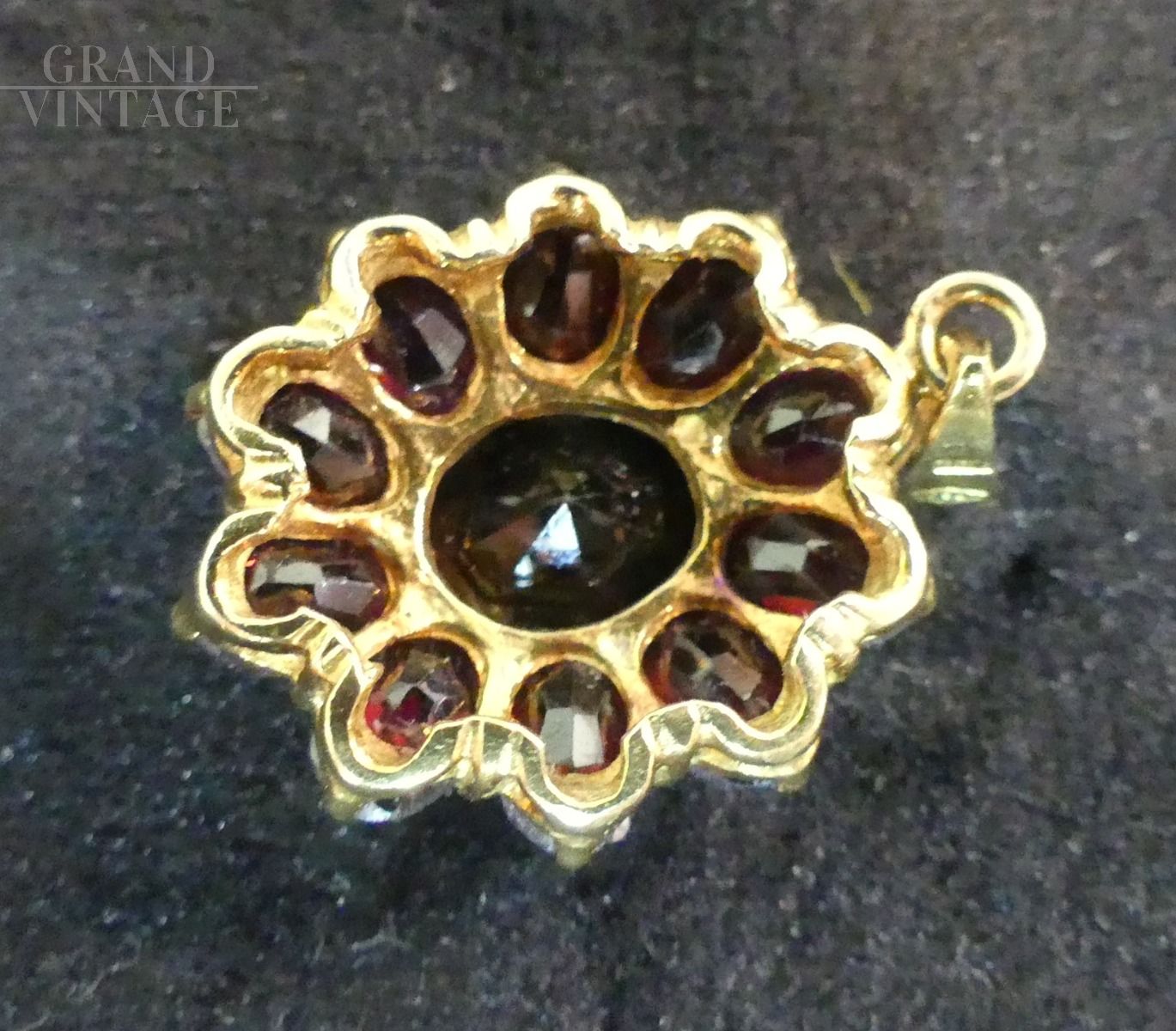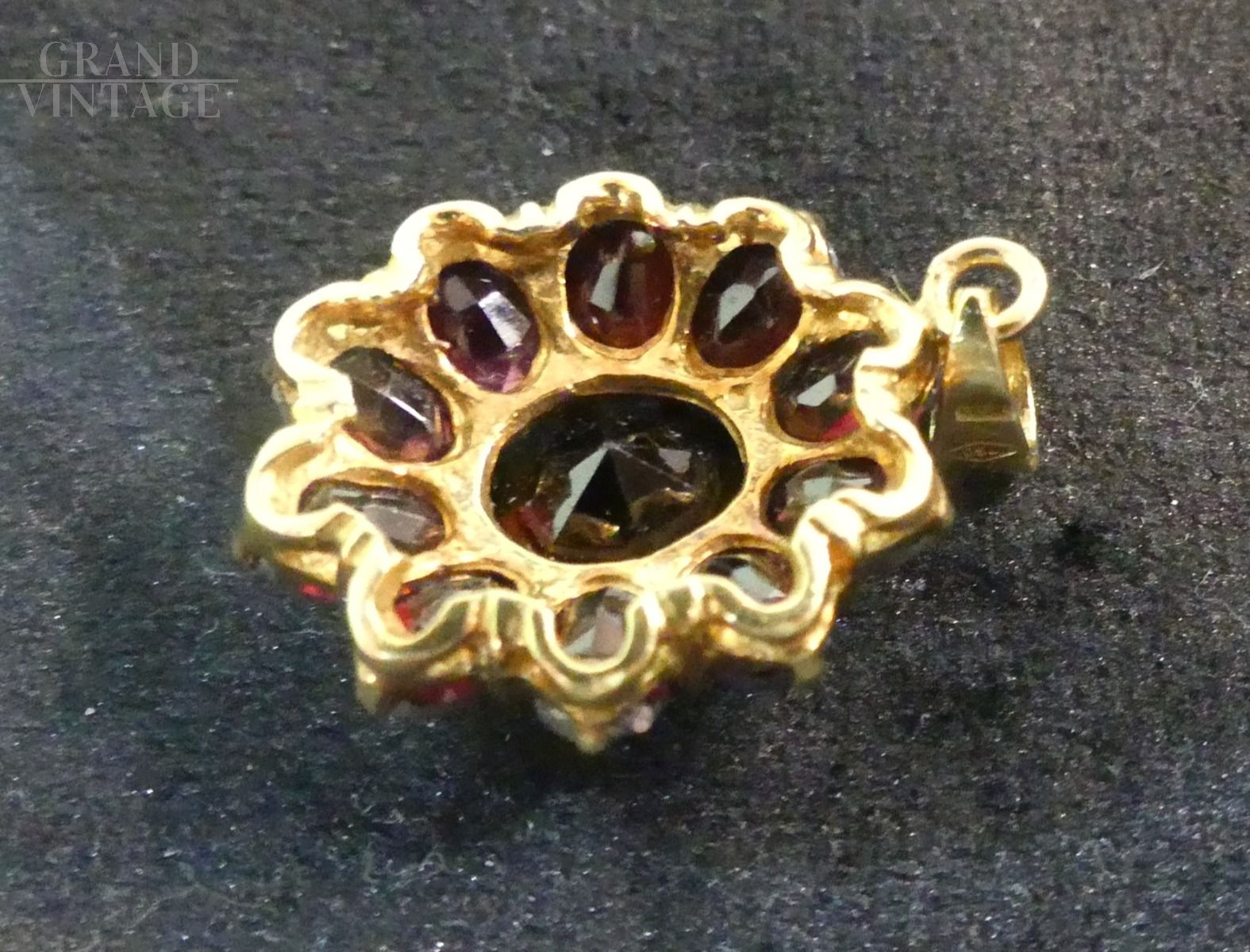 Pendente vintage in oro giallo 18 kt con ovale in gemme di granato .