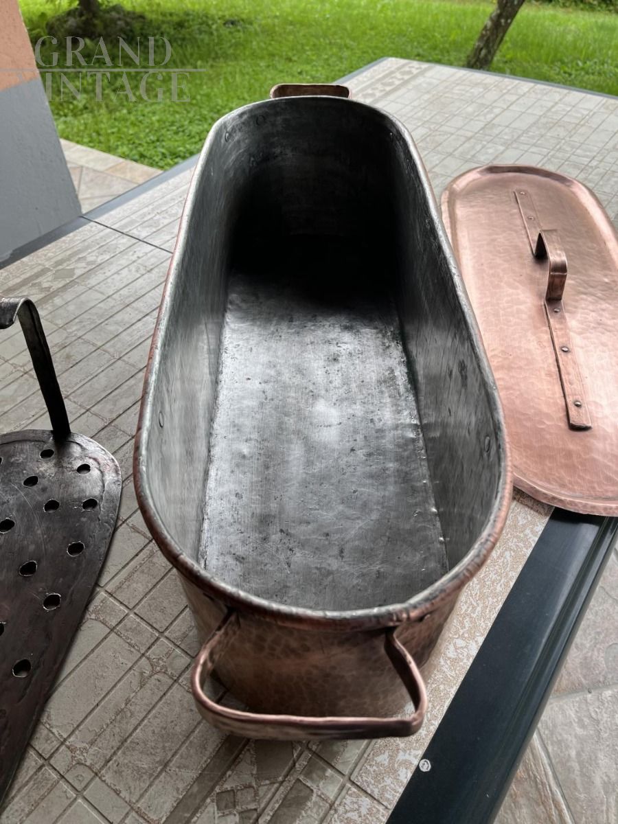 Pesciera vintage - pentola per cuocere il pesce in rame martellata a mano.