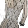 Piantana raffigurante un personaggio con maschera cappello e spada, interamente realizzata a mano, con struttura in metallo completamente rivestita di perline in vetro di Murano trasparente e nero ed elementi decorativi in vetro molato; basamento a scacchiera in vetro nero e a specchio. La piantana è dotata di sette attacchi per lampadine di tipo E14.