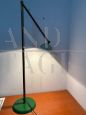 Piantana anni '20 in ottone con snodo, direzionabile e orientabile, la base è laccata in colore verde e il proiettore in colore bianco. Rara e molto particolare, presenta i naturali segni del tempo. Misure: altezza 2,10 m, circonferenza base 30 cm.