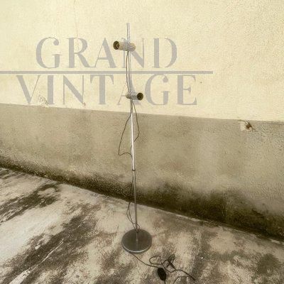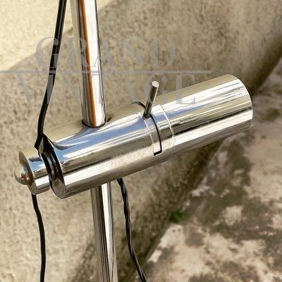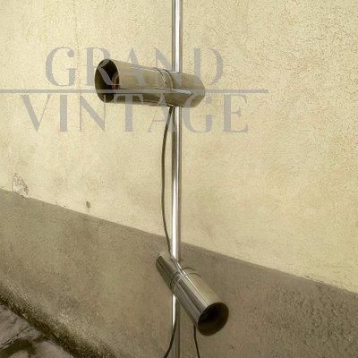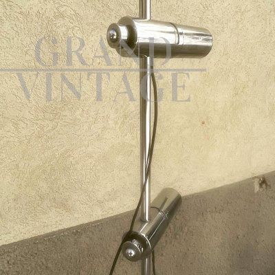 Lampada vintage a stelo in metallo cromato con due faretti con attacco a baionetta regolabili in altezza, Francia anni '70
