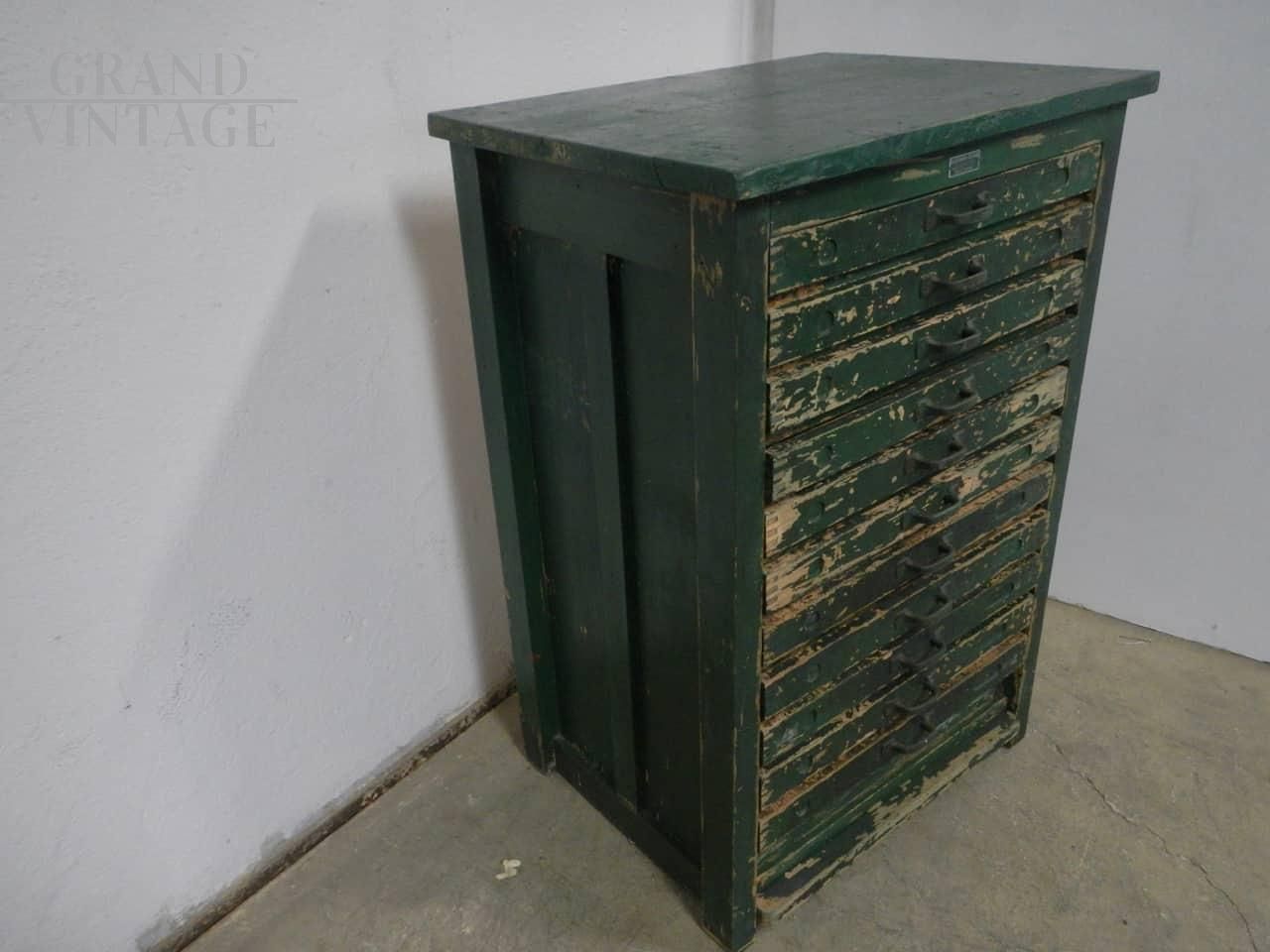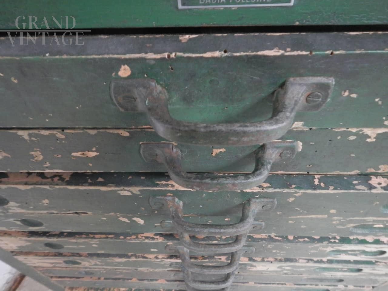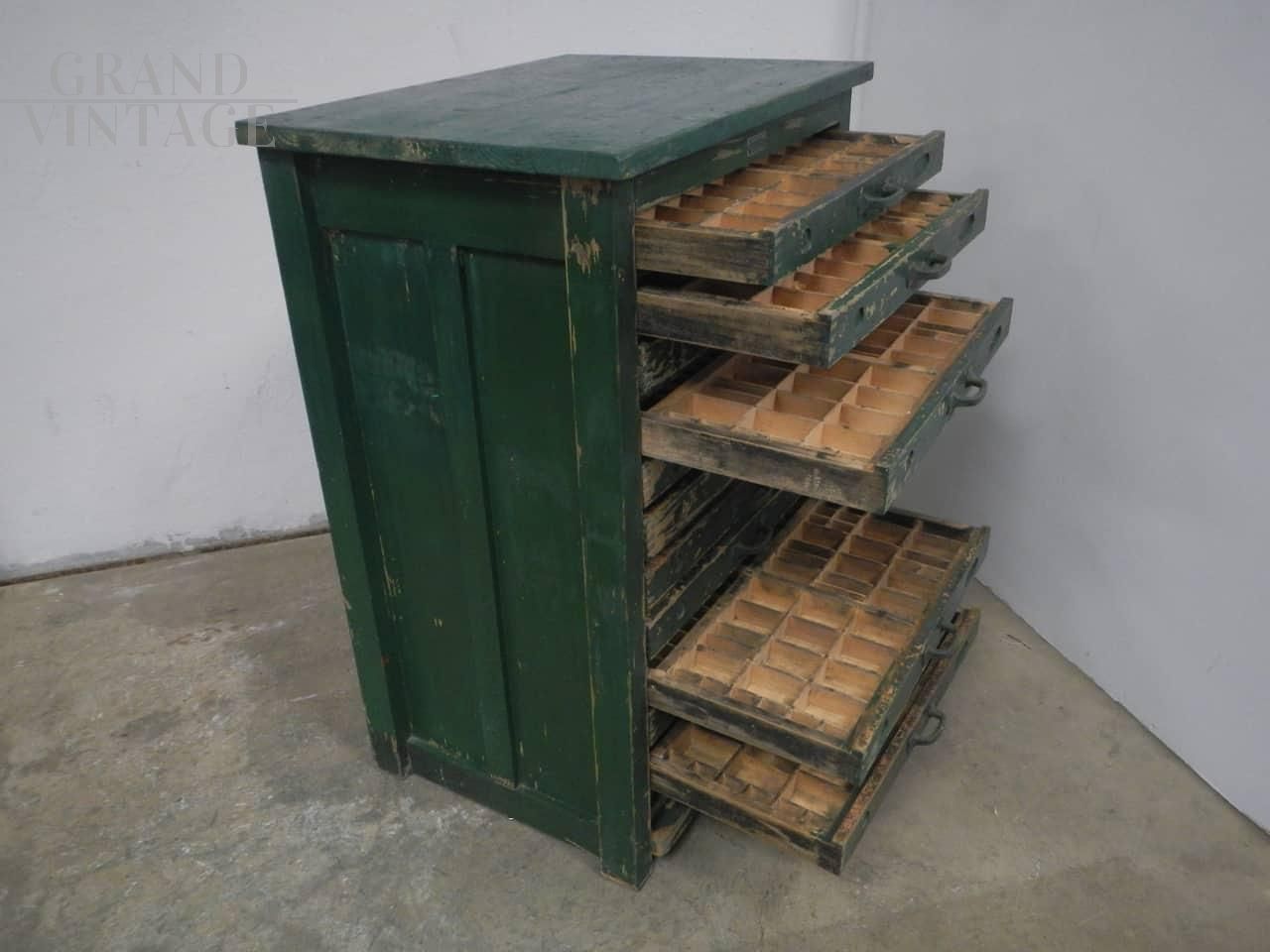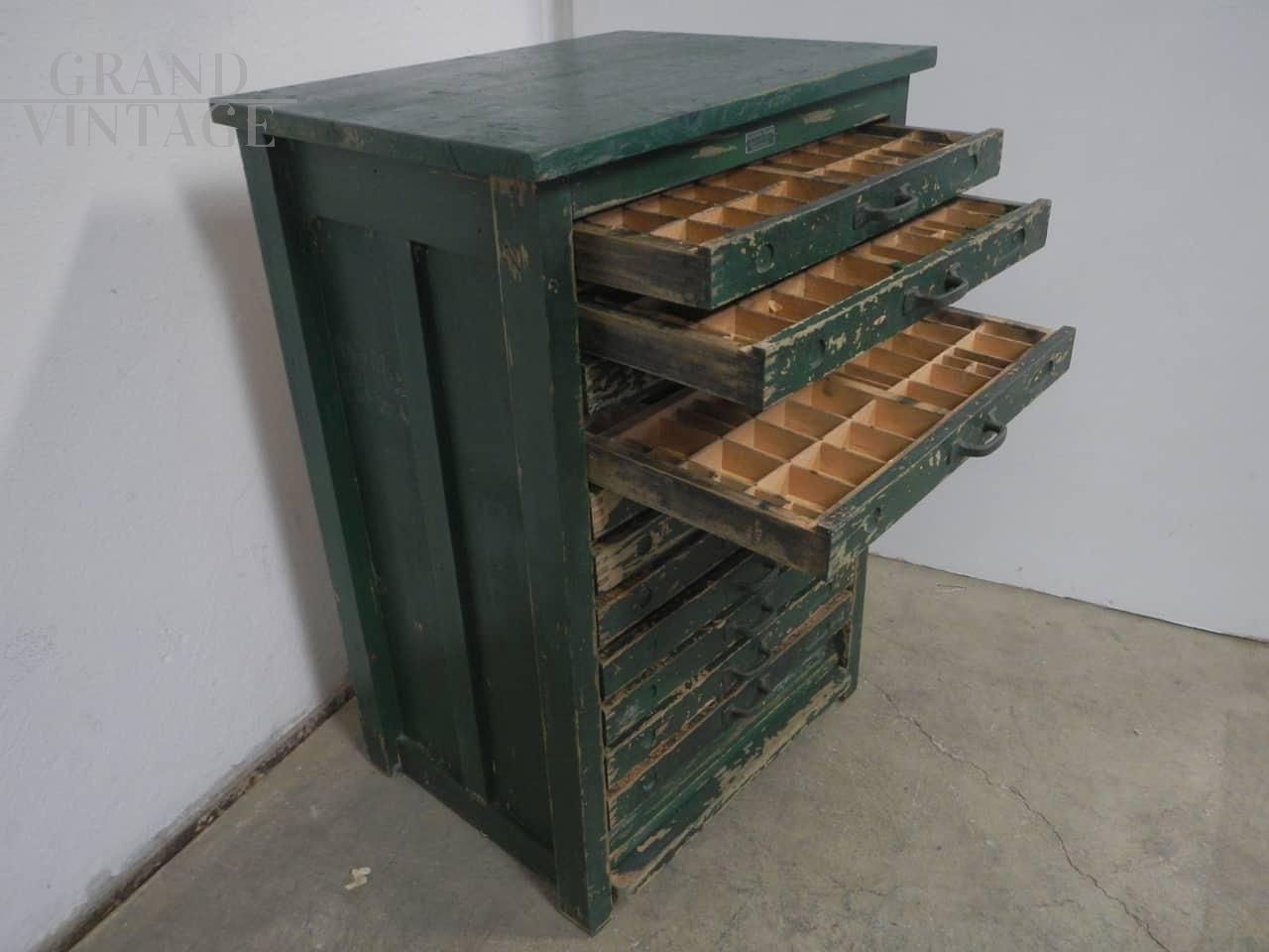Cassettiera da tipografia anni 50 ditta xilografia italiana badia polesine, restaurata e funzionante, con 11 cassetti.