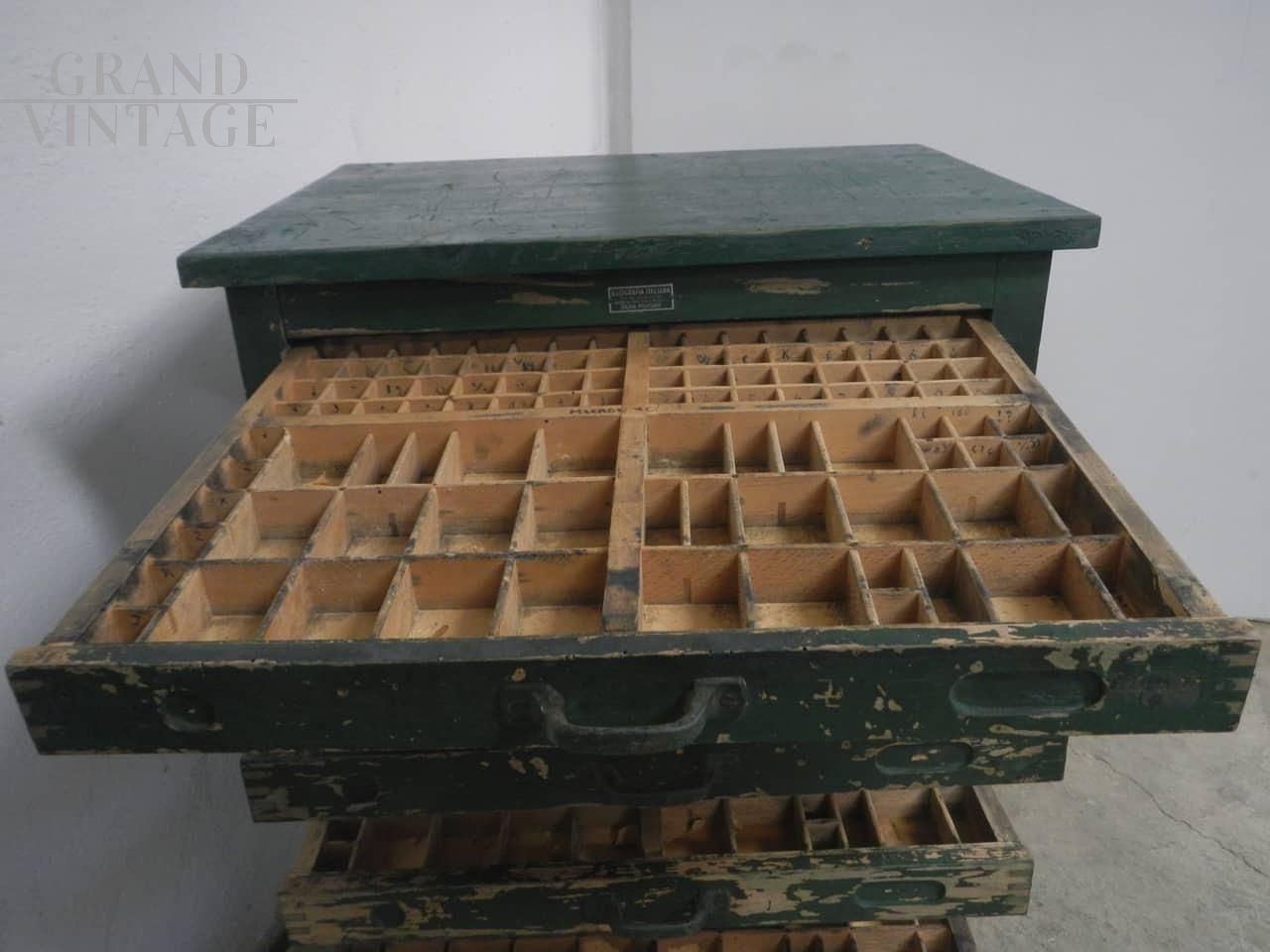 Piccola cassettiera da tipografia anni '50
