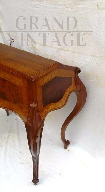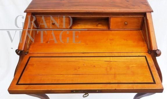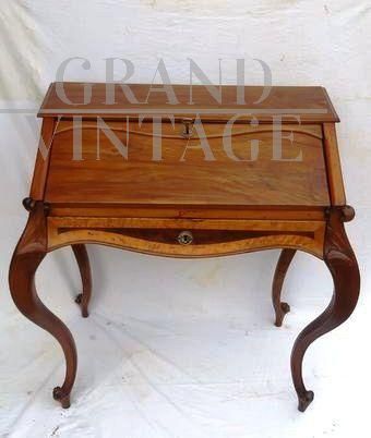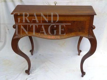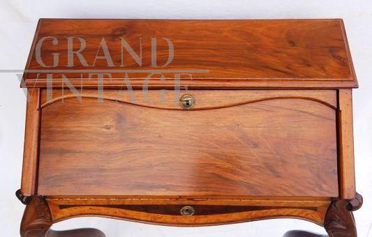 Piccola ribaltina di inizio '900 in ciliegio, noce e radica di noce