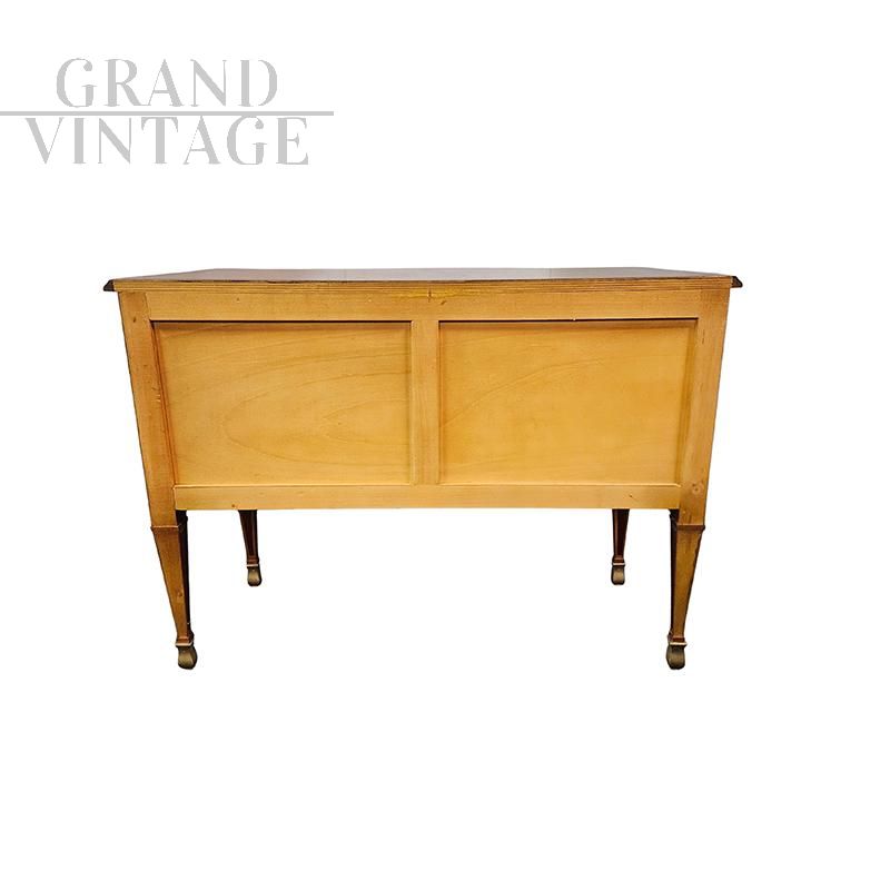 Piccolo comò in stile antico Luigi XVI in radica di noce con intarsi