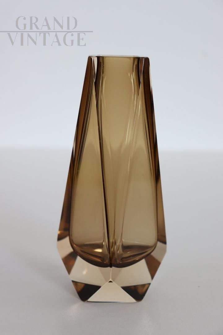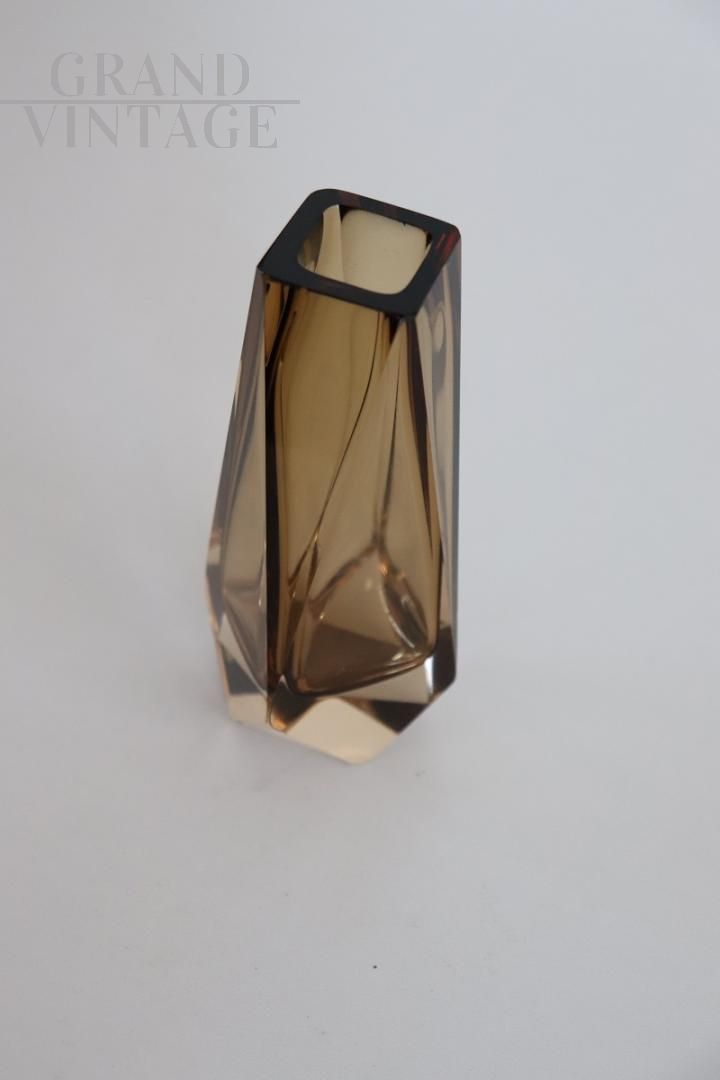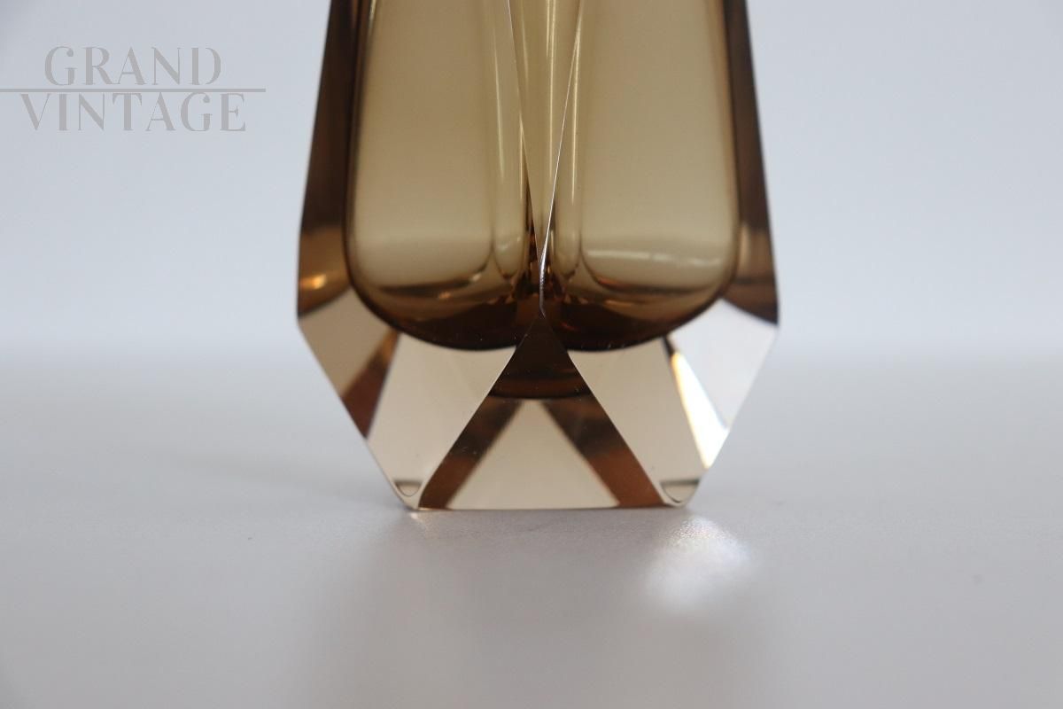 Piccolo vaso Mandruzzato in vetro di Murano sfaccettato color ambra, anni '60