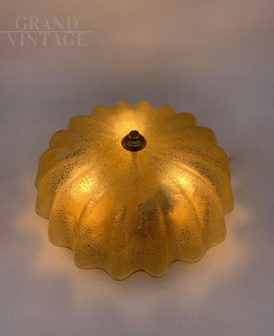 Plafoniera attr. Seguso in vetro di Murano color ocra, anni '60