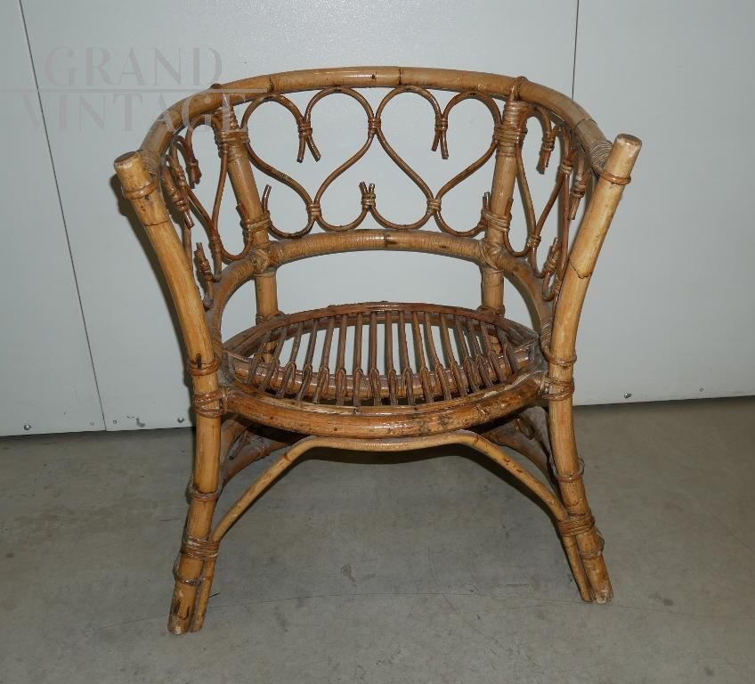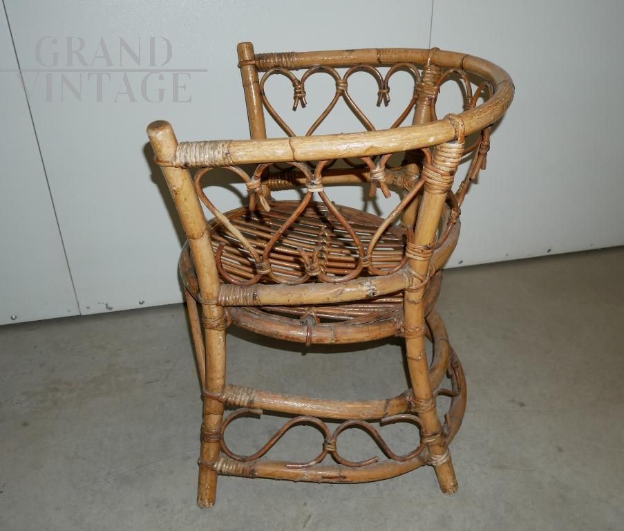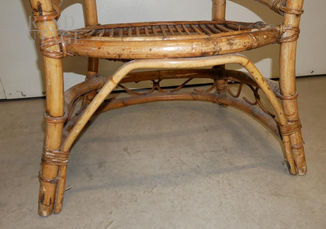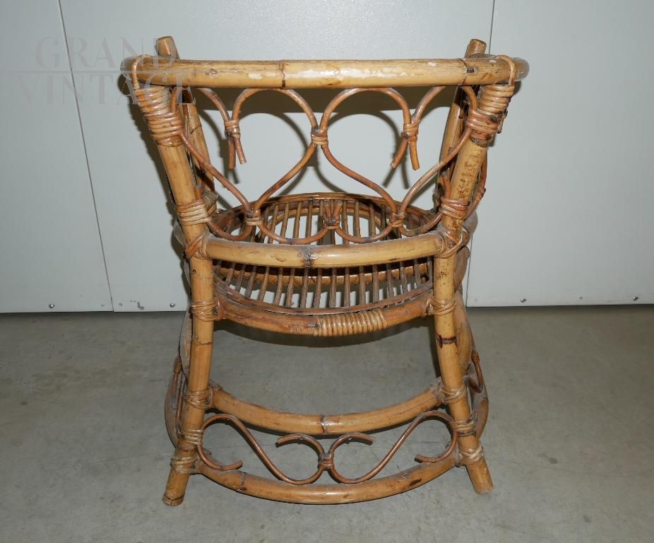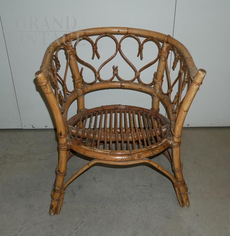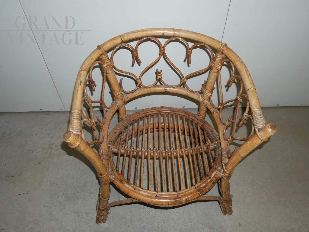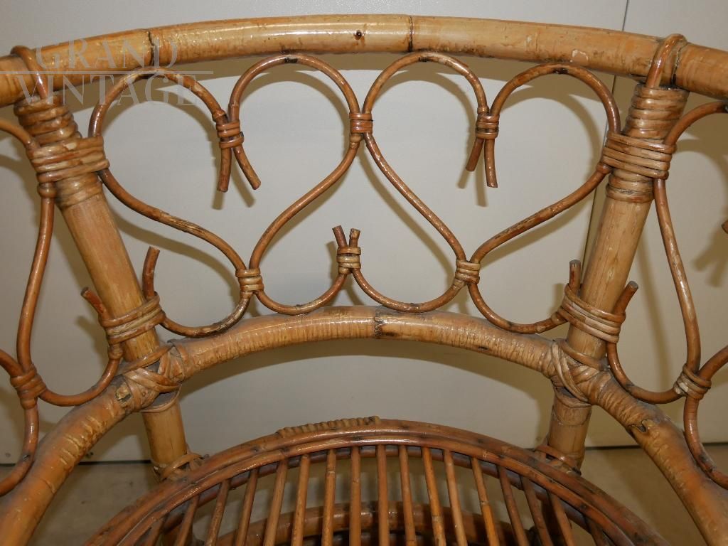 Poltrona a pozzetto vintage in bamboo anni '70
