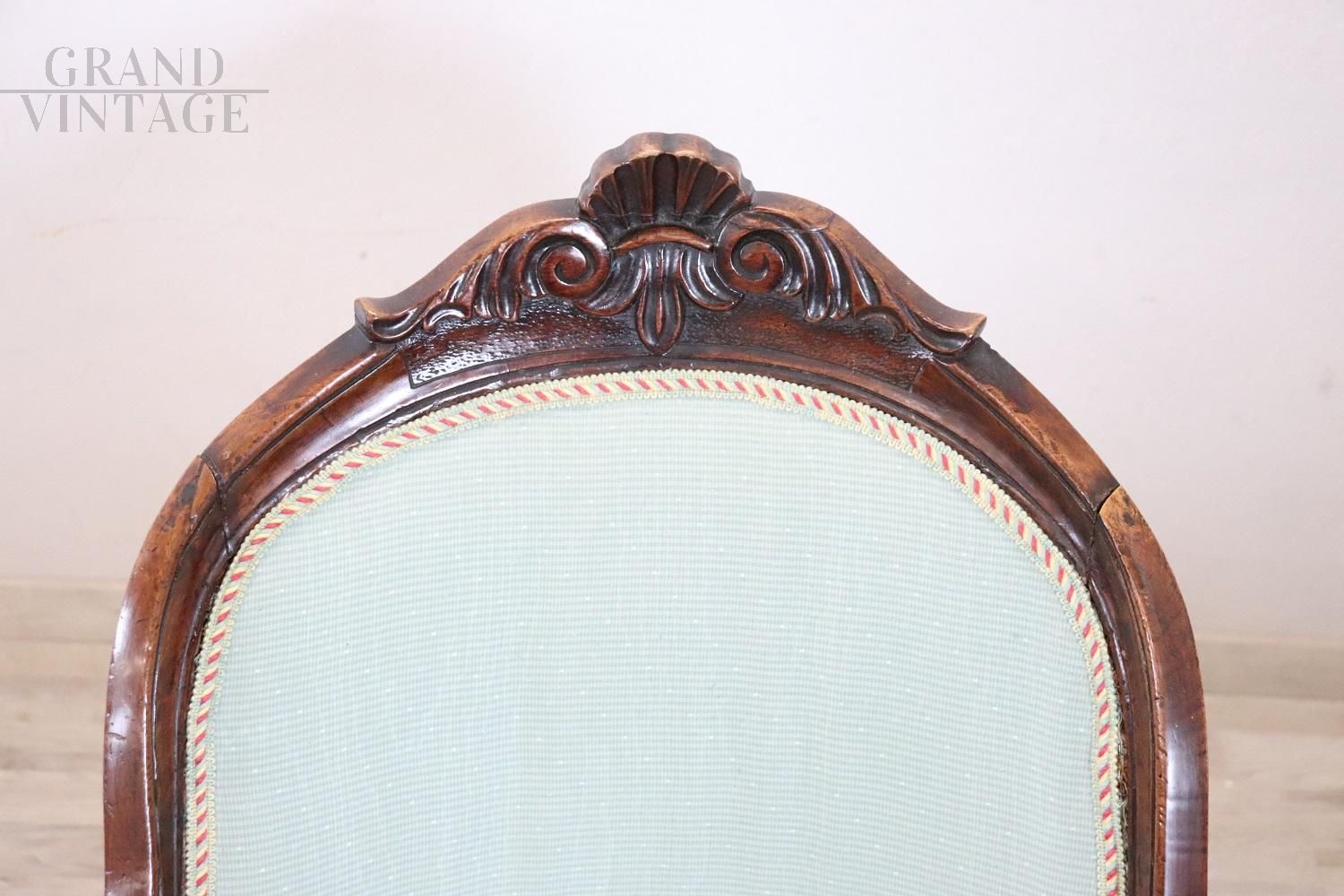 Poltrona antica imbottita in noce intagliato di epoca Luigi Filippo, metà '800