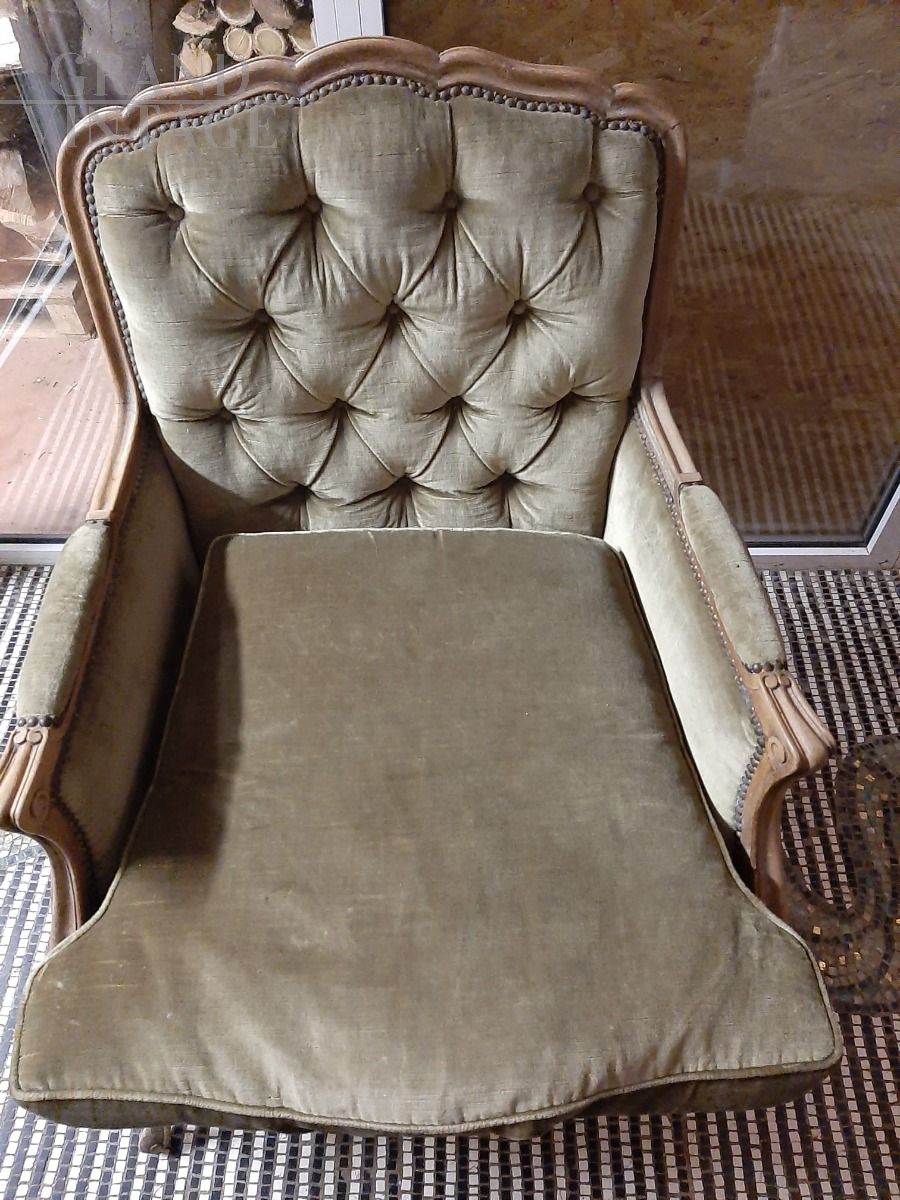 Poltrona capitonnée primi '900 in velluto verde kaki