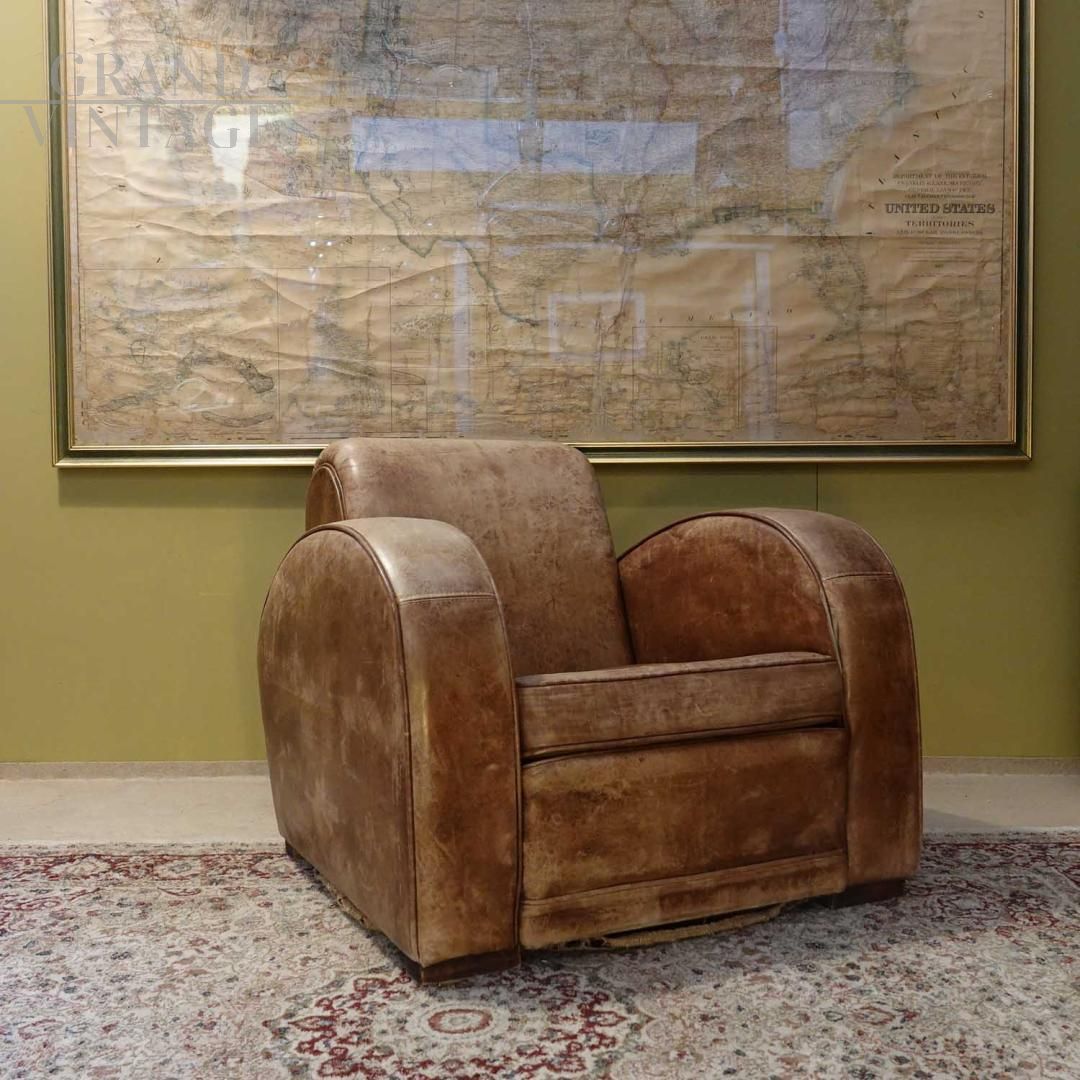 Poltrona da club vintage, con la sua forma avvolgente, i braccioli ampi e il rivestimento in pelle invecchiata, è un classico dell’arredo retrò e industrial. Perfetta per creare un’atmosfera calda e accogliente in bar, ristoranti, lounge o salotti dal carattere deciso e vissuto.