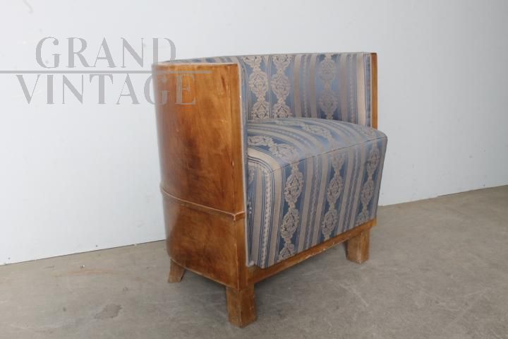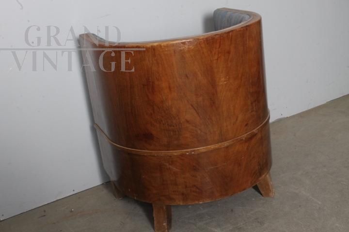 Poltrona curva art déco a pozzetto in noce, anni '30