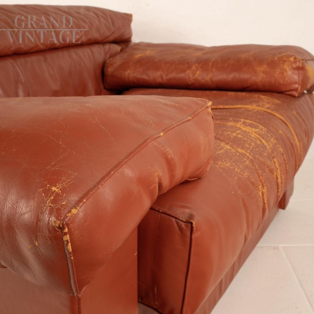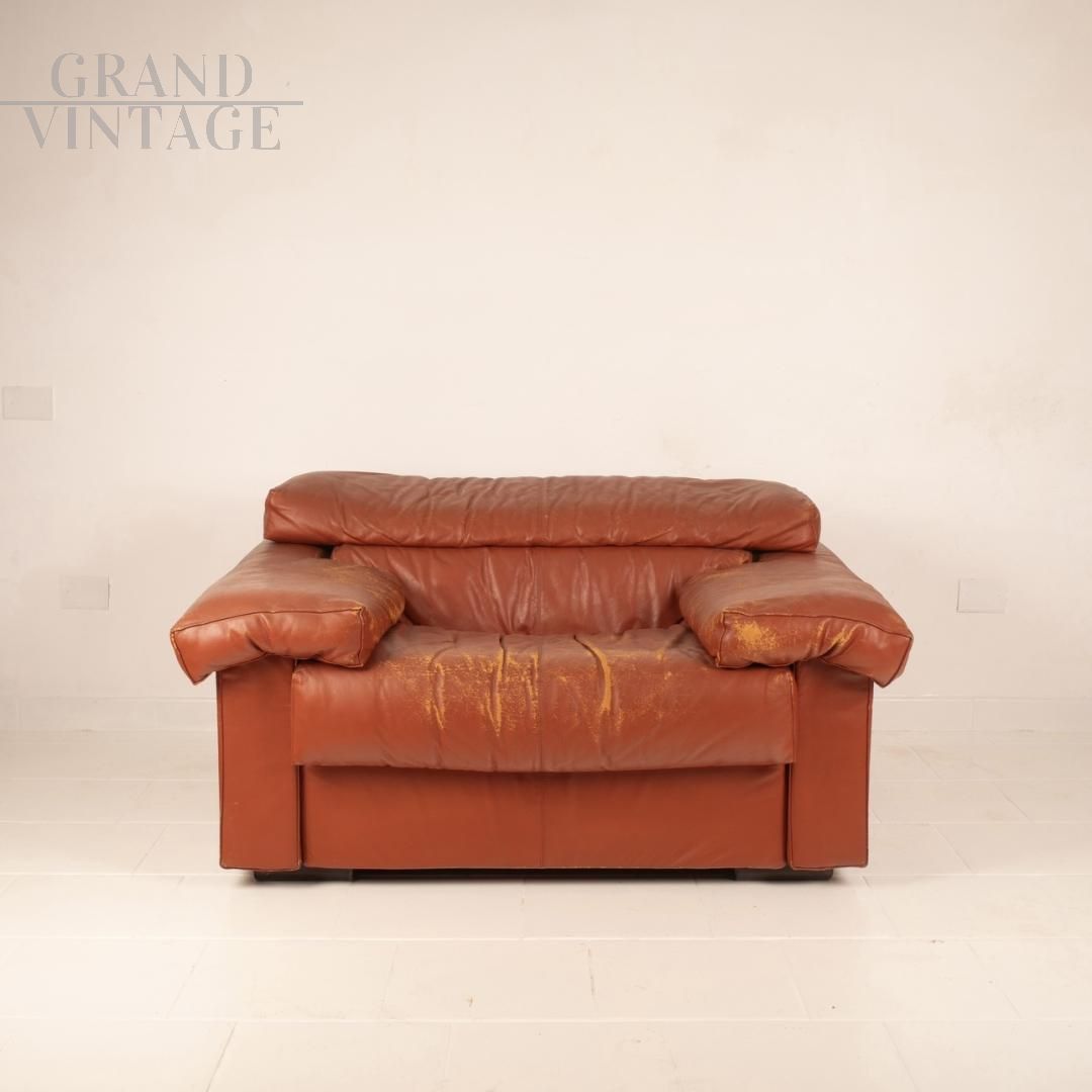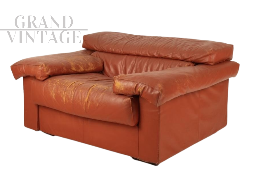 Straordinaria poltrona Erasmo, capolavoro disegnato da Afra e Tobia Scarpa per l'acclamata B&B Italia negli anni '70. Icona di design di quel periodo, questa poltrona è stata ampiamente pubblicizzata su riviste e ha fatto la sua comparsa in vari film. In condizioni impeccabili, presenta una patina del tempo che le conferisce un carattere vissuto, senza alcun danno o rottura della pelle. Per gli appassionati di oggetti con una storia autentica, questa poltrona rappresenta una scelta senza pari. Aggiungi un tocco di eleganza vintage al tuo spazio con questa affascinante poltrona Erasmo.
