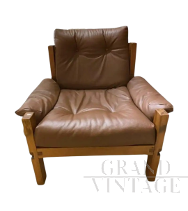 Poltrona Erasmo di Afra e Tobia Scarpa per B&B Italia in pelle marrone