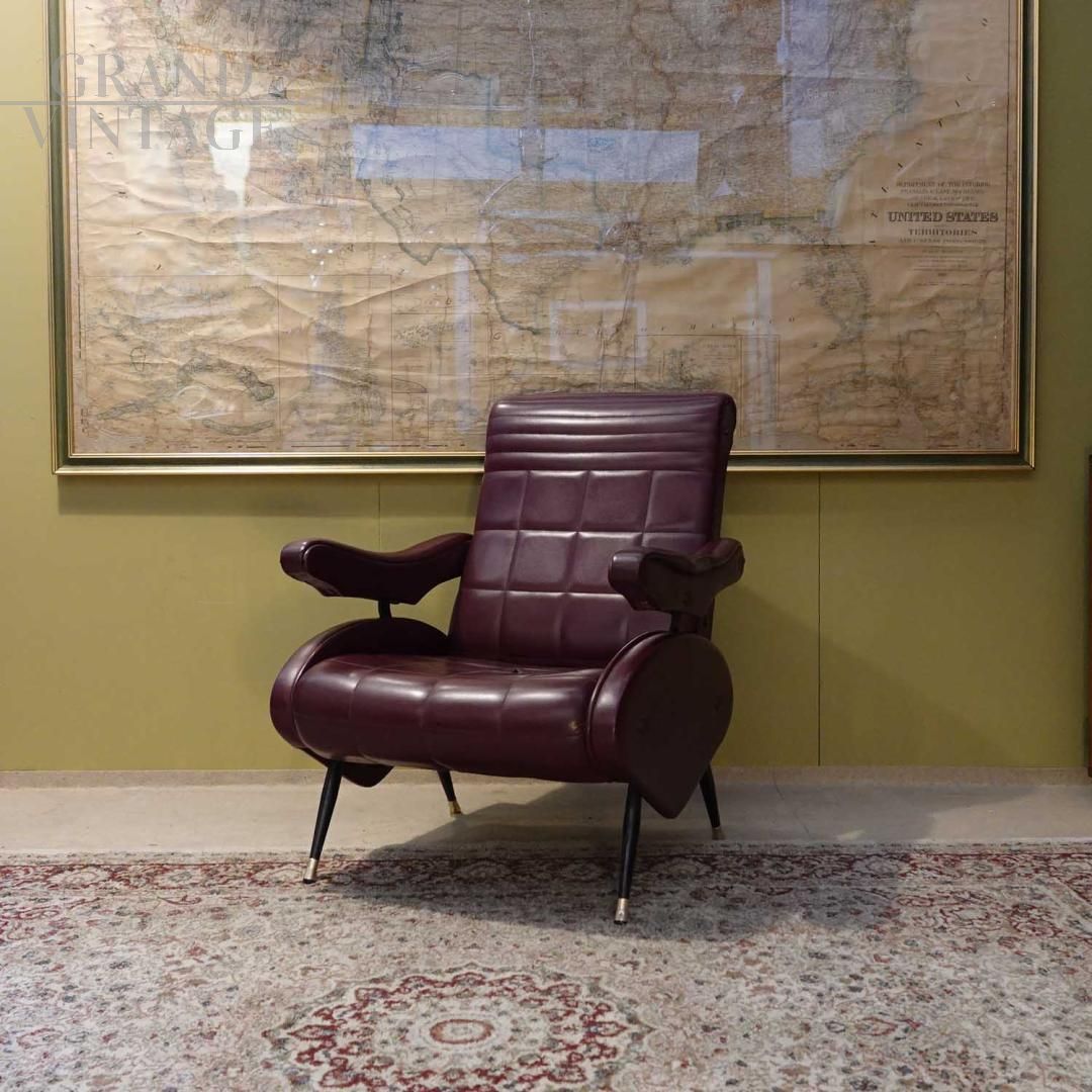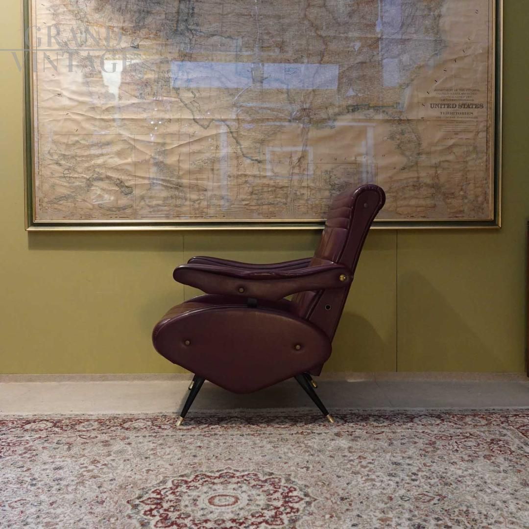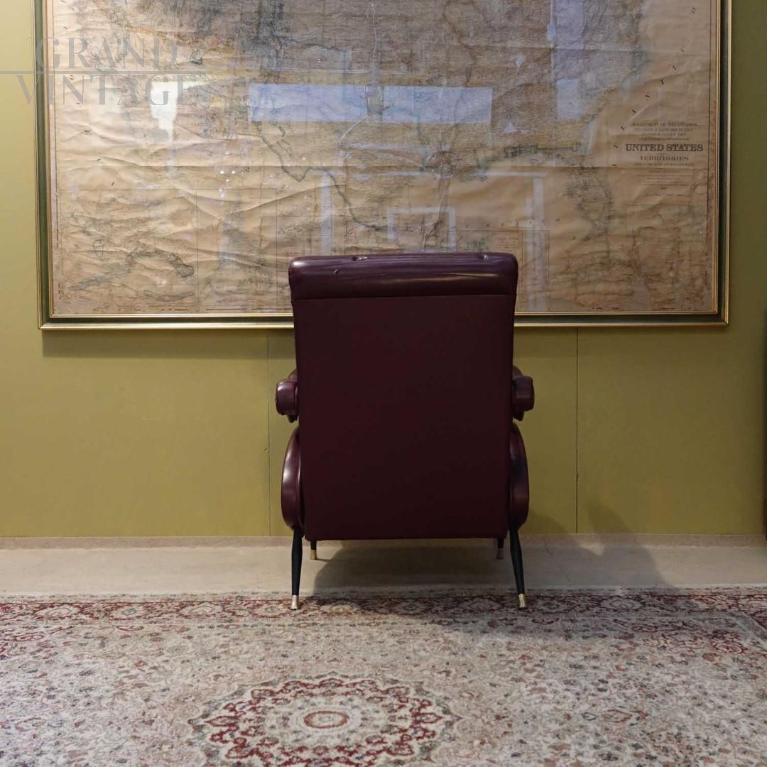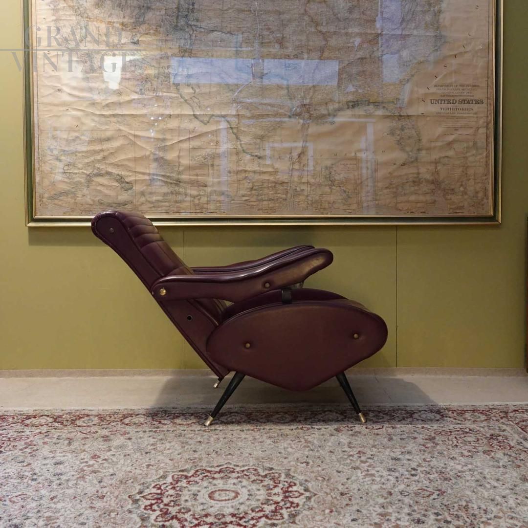 Poltrona reclinabile di Nello Pini in skai bordeaux