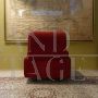Poltrona vintage in tessuto rosso originale anni ’70, caratterizzata da rivestimenti tipici dell’epoca: velluto a coste, motivi geometrici o colori accesi che catturano subito lo sguardo. Un pezzo autentico che dona energia, stile e un tocco vintage inconfondibile a qualsiasi ambiente.