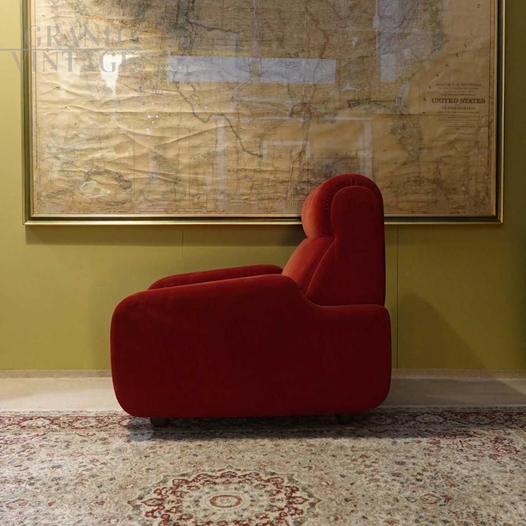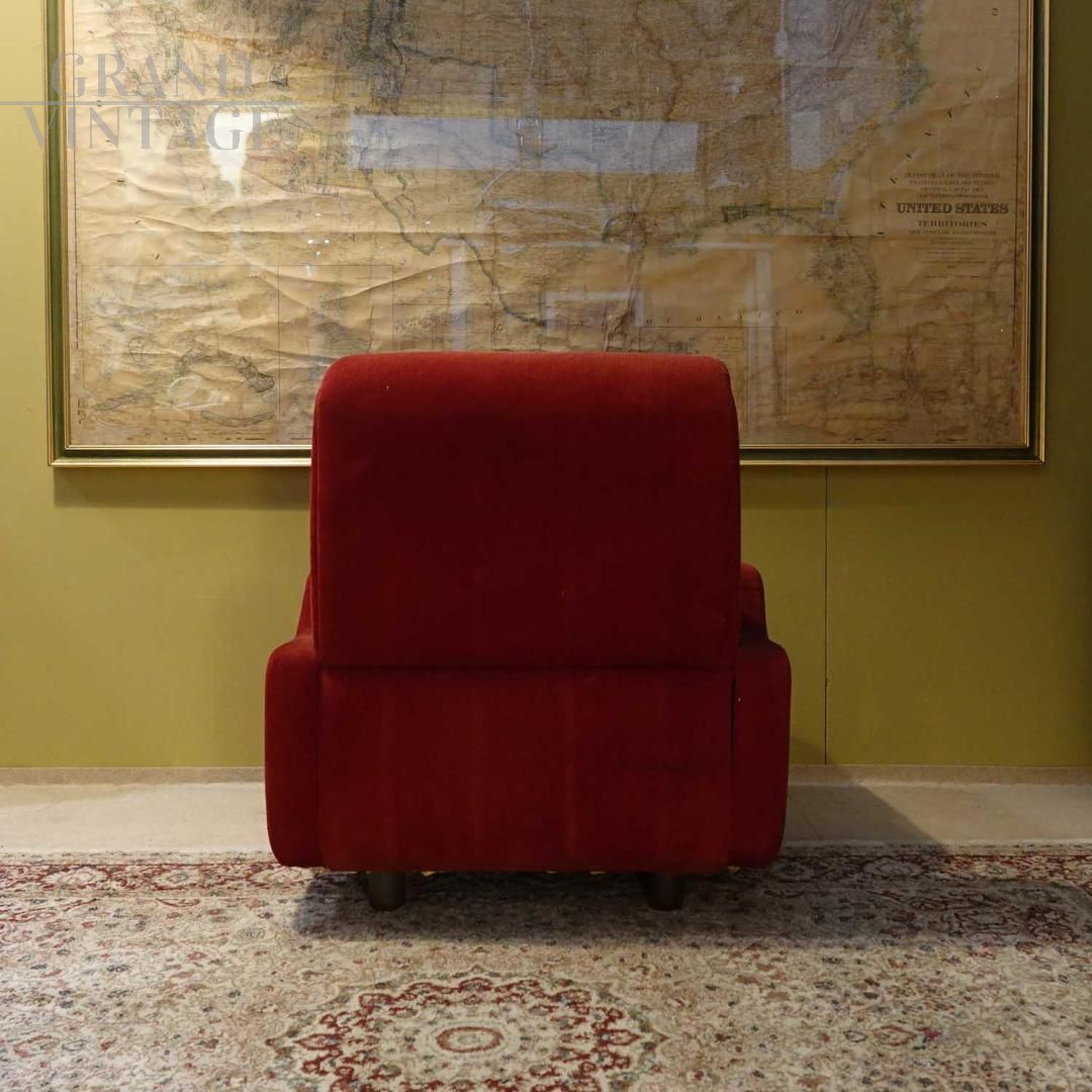 Poltrona vintage in tessuto rosso, anni '70