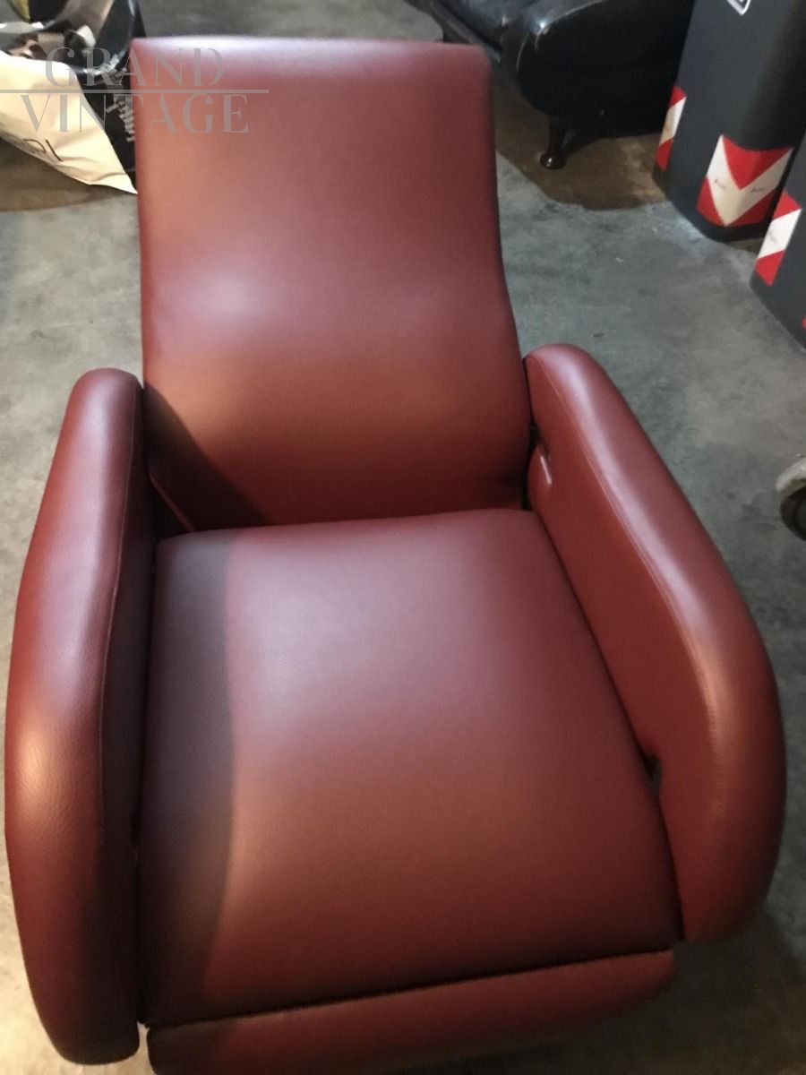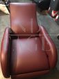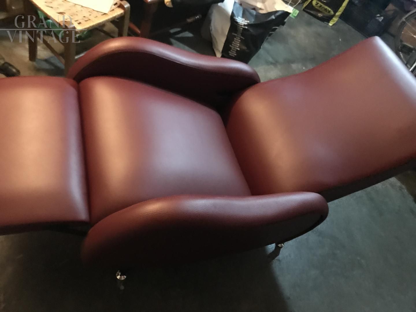 Replica di poltrona Lady di Zanuso reclinabile, vintage originale, tutta restaurata e rivestita in vera pelle bordeaux.
