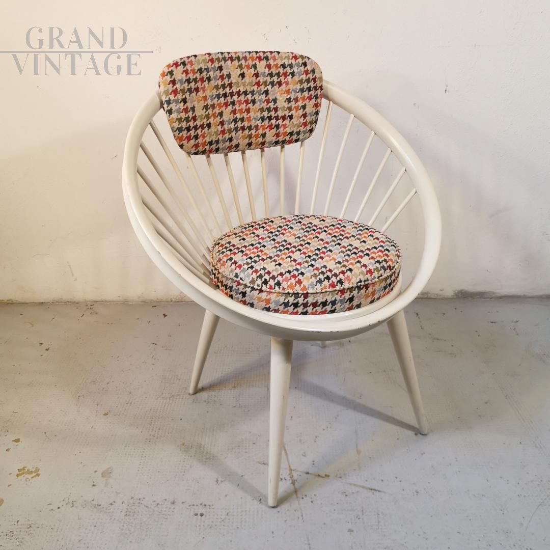 Poltroncina di Yngve Ekström con tessuto Pied de Poule