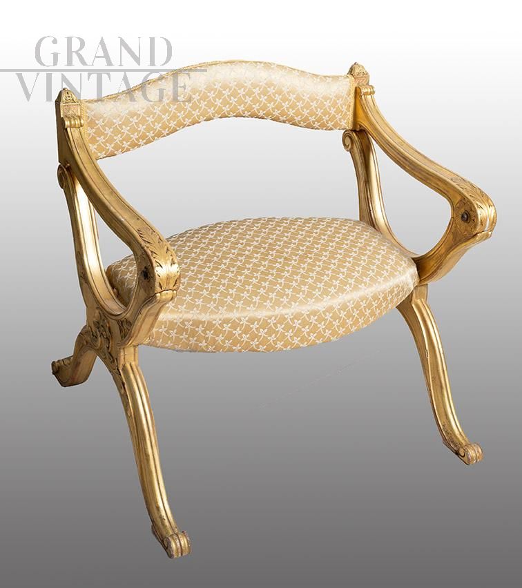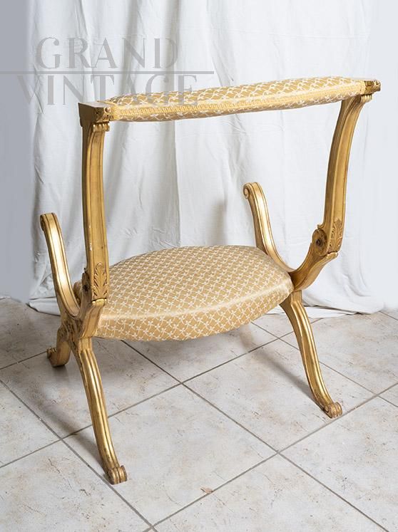 Poltroncina inginocchiatoio antico Luigi Filippo in legno dorato e intagliato