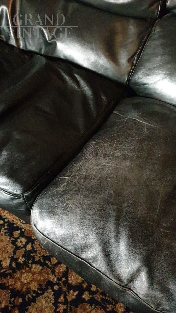 Set salotto di Tito Agnoli per Poltrona Frau in pelle nera, anni '70-'80