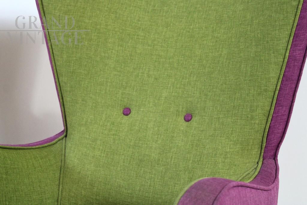 Poltrone vintage anni '80 in cotone piquet verde e viola
