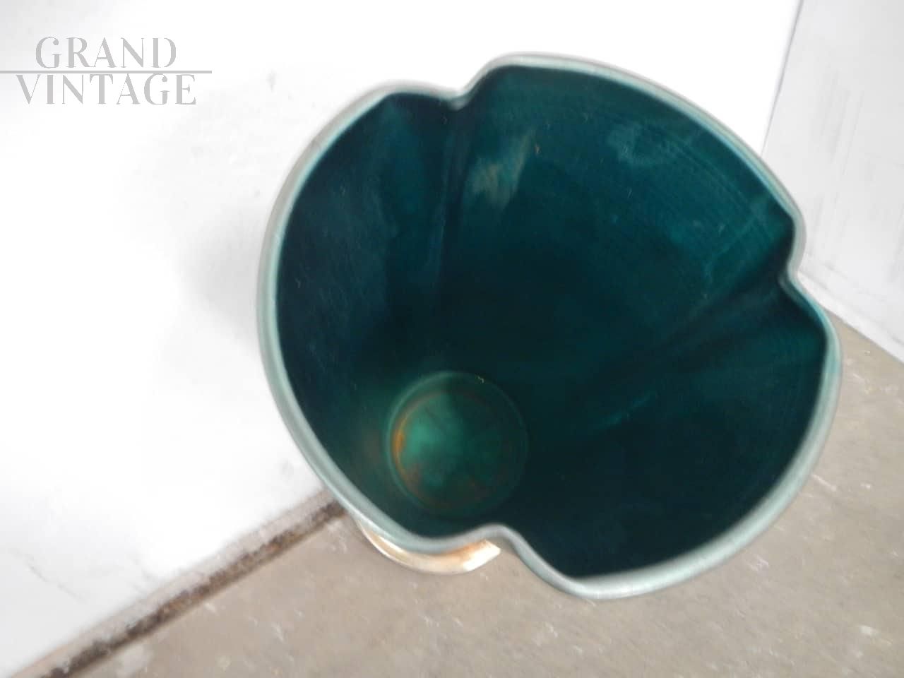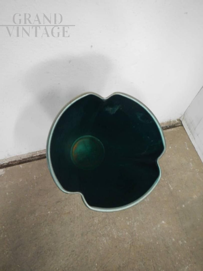 Portaombrelli vintage in alluminio laccato verde con base dorata. La base è in metallo pieno, per garantire stabilità al portaombrelli ed evitare che si ribalti.