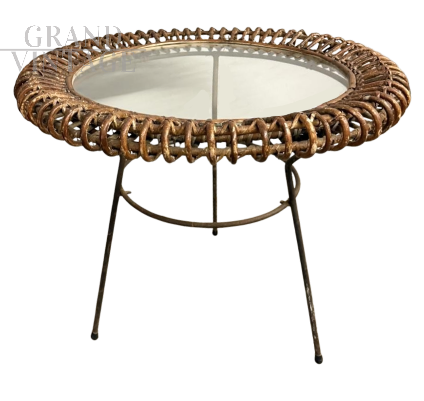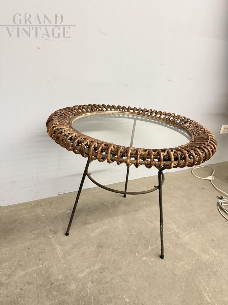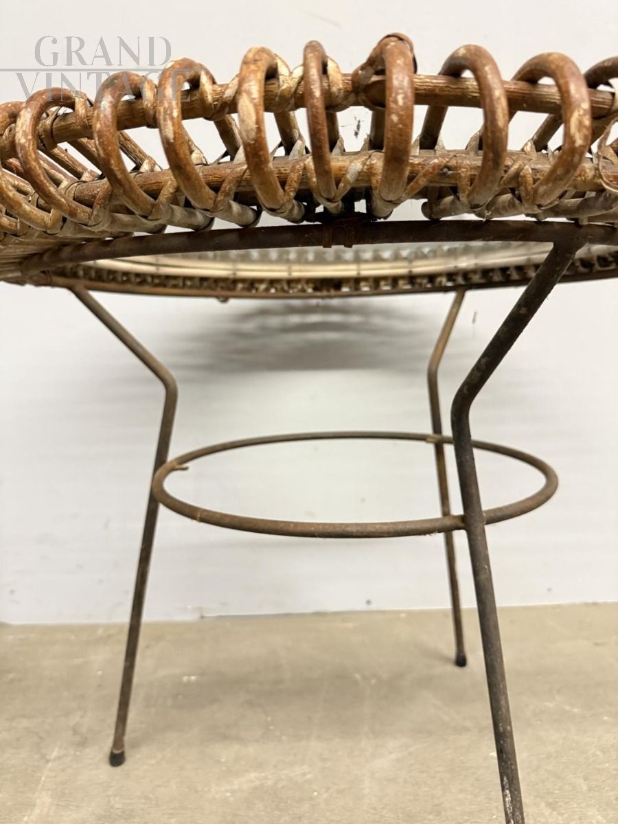 Raro tavolino Bonacina in bamboo, vetro e ferro, anni '50
